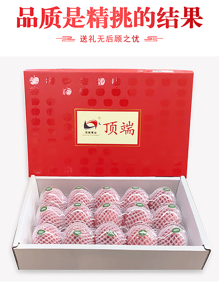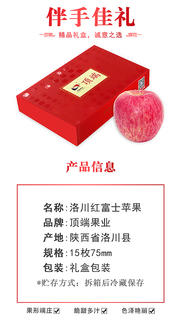 【顶端果业红礼盒】顶端果业洛川红富士苹果15枚75mm礼盒装 新鲜苹果