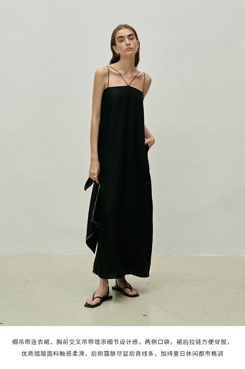 Viktoria Chan | SS23101 Lotti long strap dress[ 吊带连衣裙 黑 / 浅米 ]