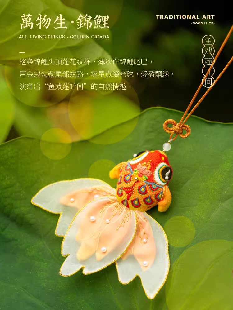 锦鲤平安符刺绣手工diy材料包金蝉香囊随身挂件原创荷包福礼物