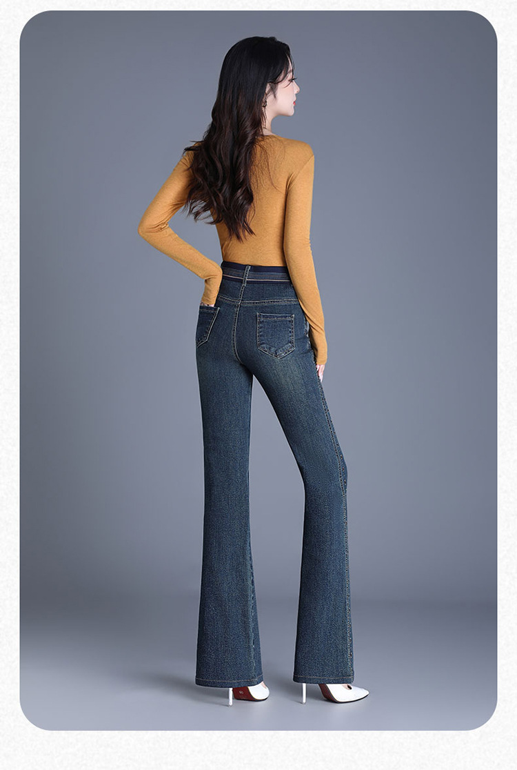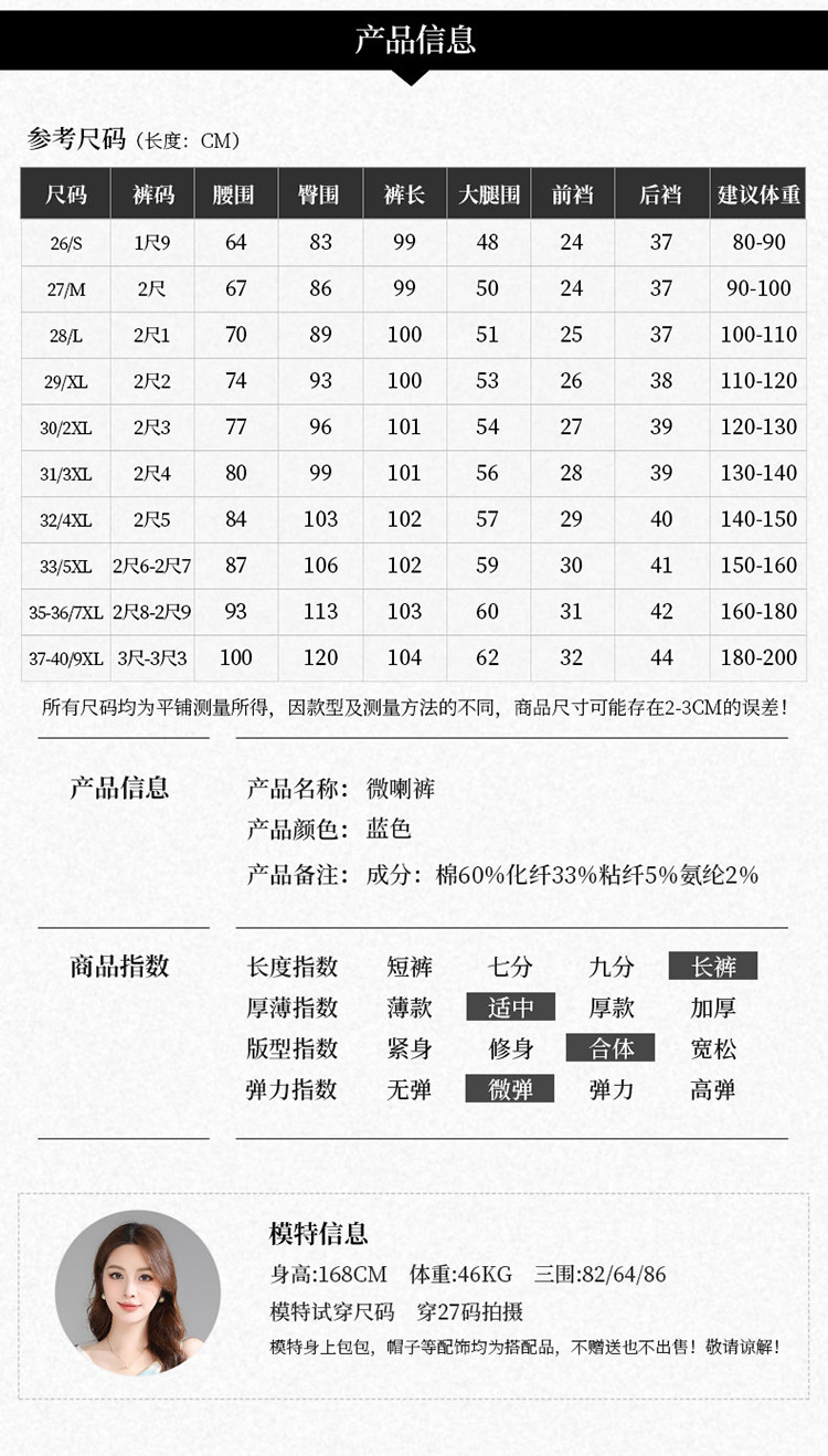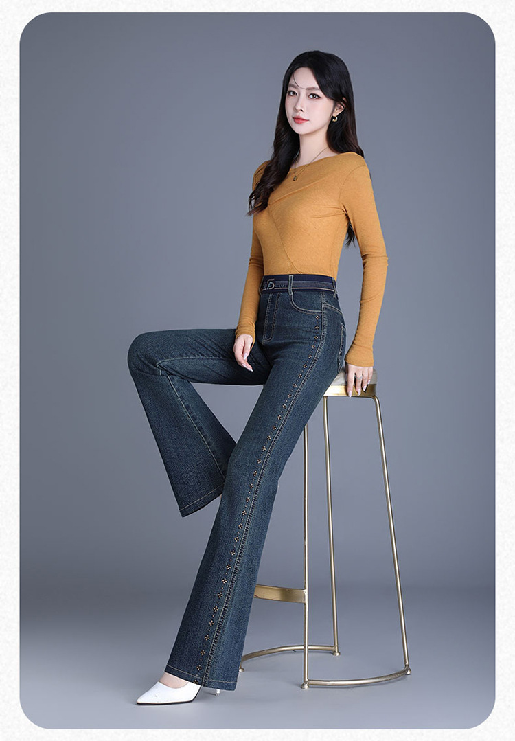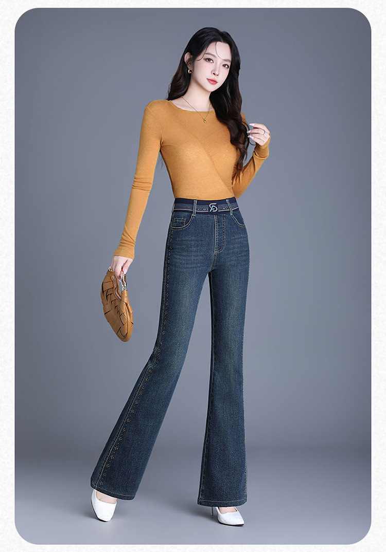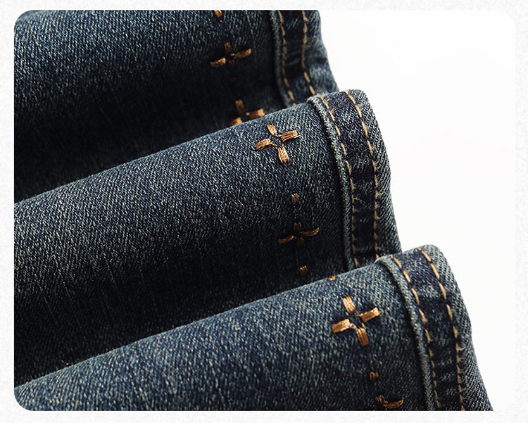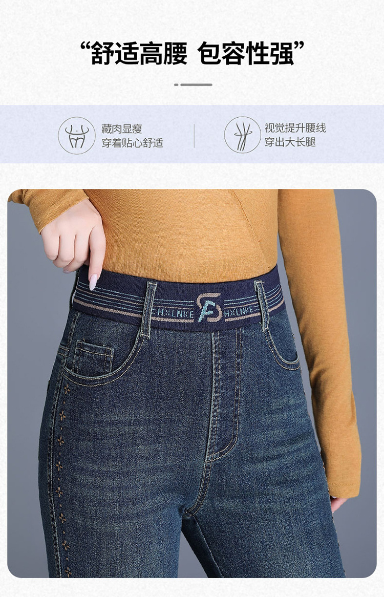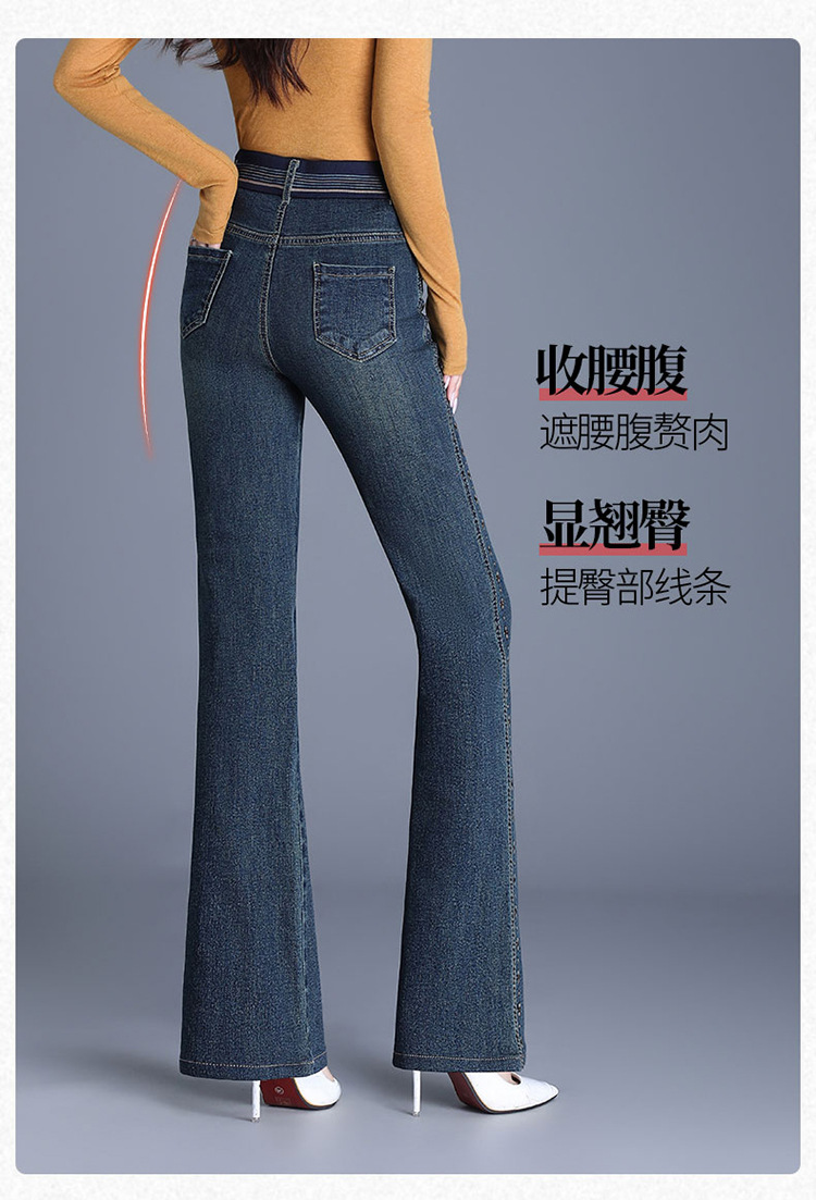 QYM 9855-Y弹力高腰刺绣花牛仔裤微喇裤宽松休闲裤 商品图4