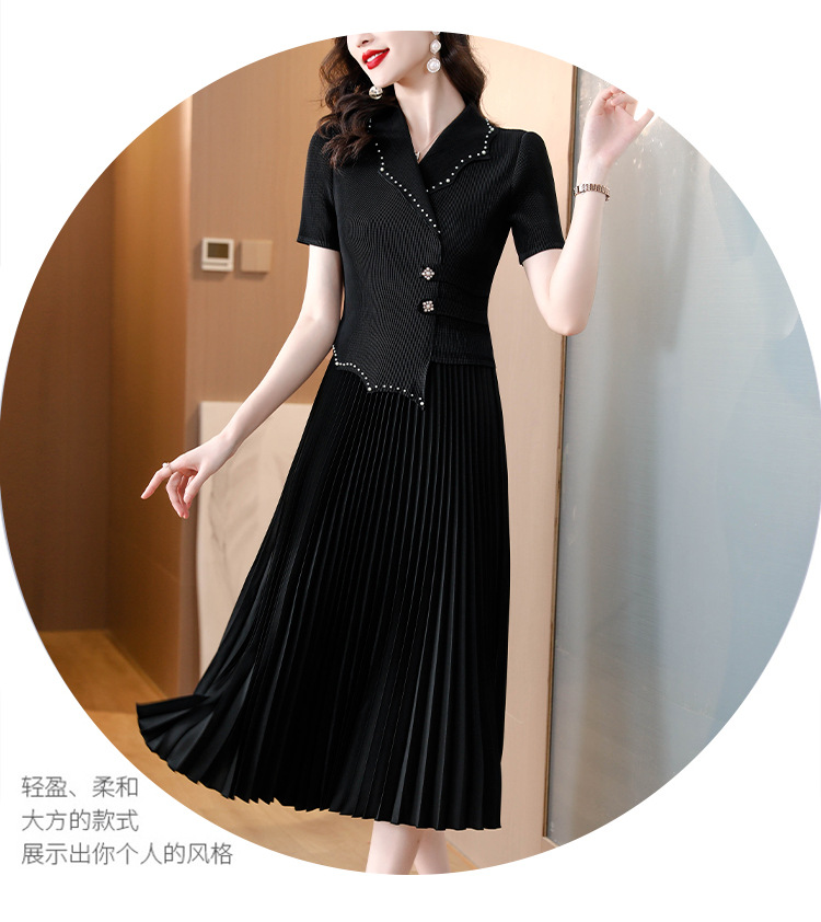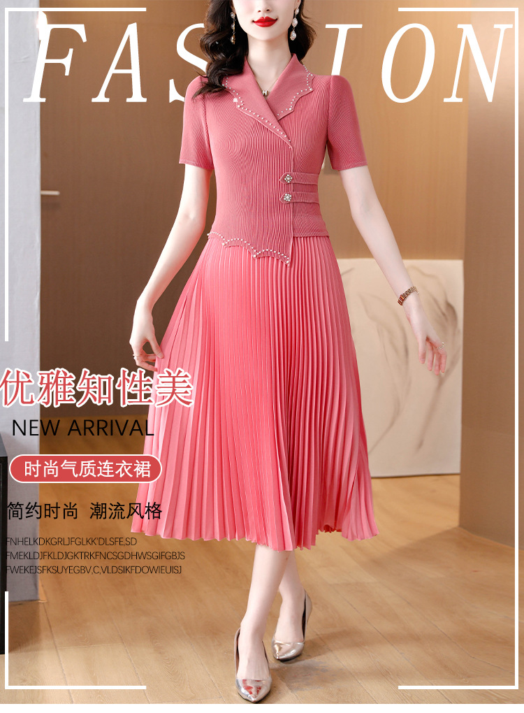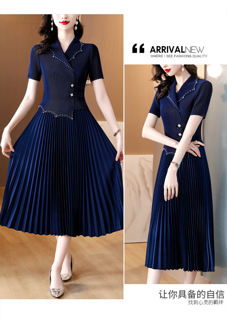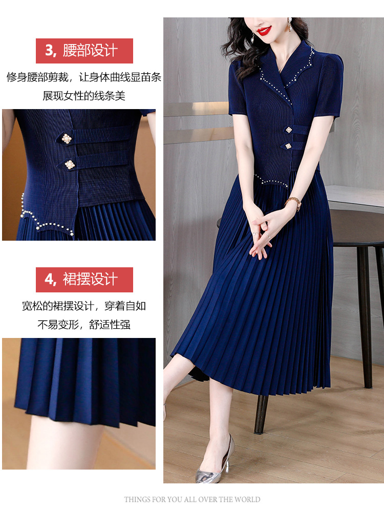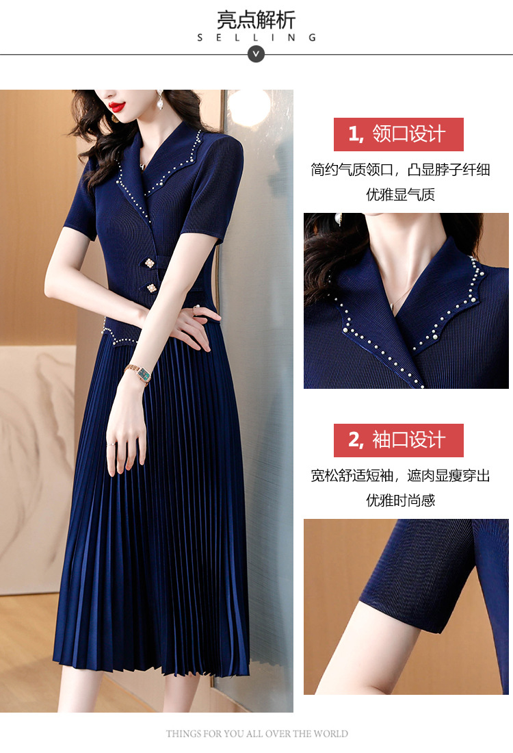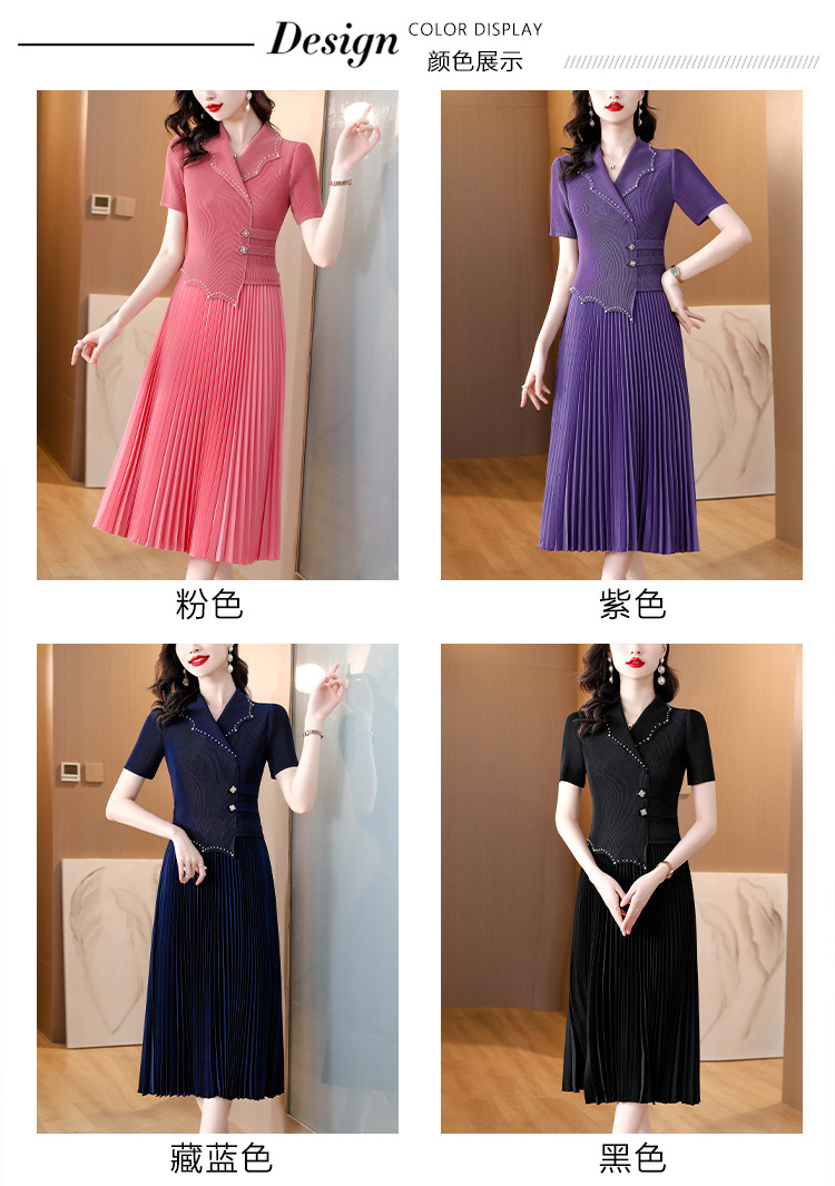 NYL 1322时尚洋气西装领钉珠修身显瘦减龄褶皱连衣裙