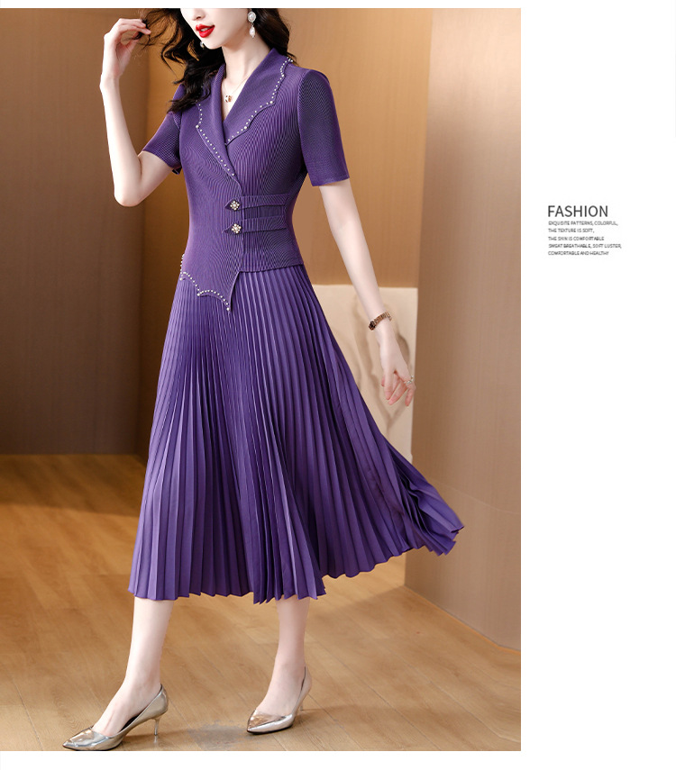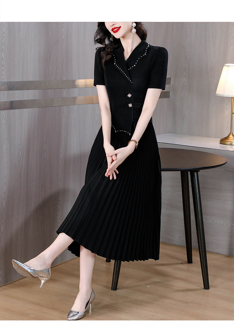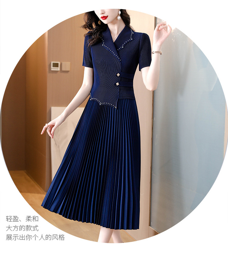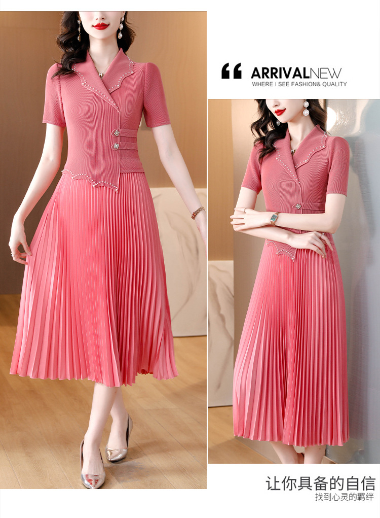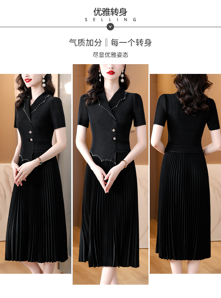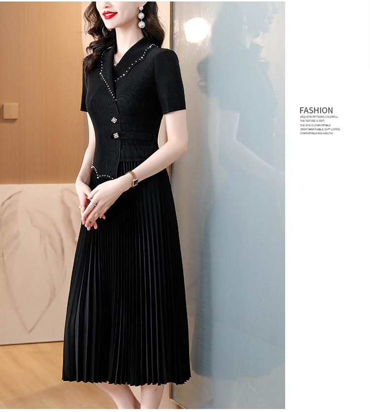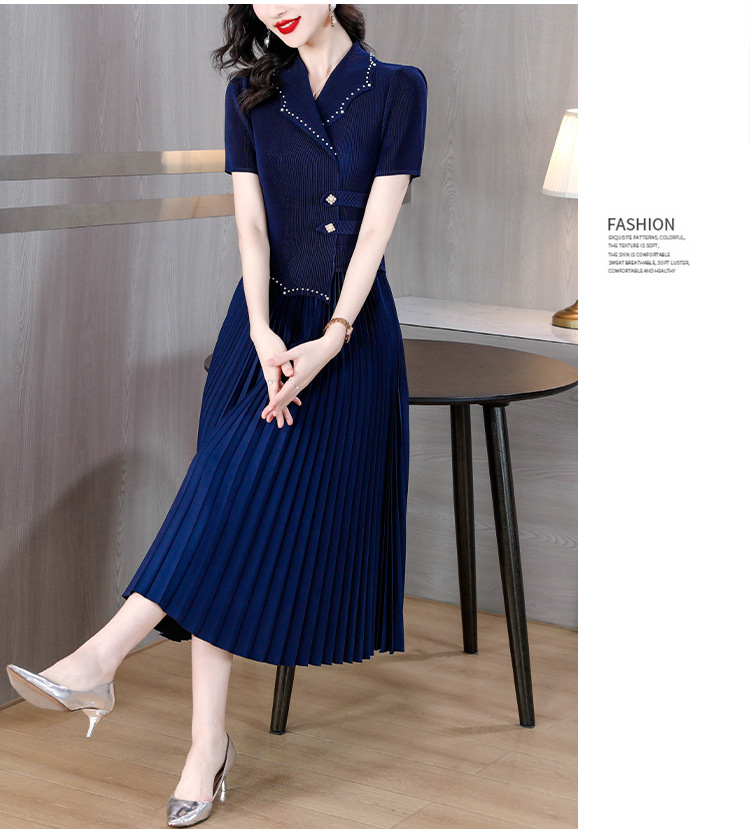 NYL 1322时尚洋气西装领钉珠修身显瘦减龄褶皱连衣裙