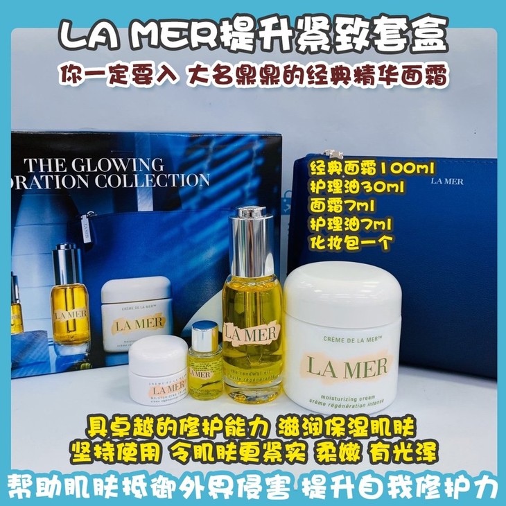 LA MER提升紧致套盒👍旅行专享的便携套盒🎒,你一定要入。大名鼎鼎的经典精华面霜💧,具卓越的修护能力,滋润保湿肌肤💦,坚持使用,令肌肤更紧实、柔嫩、有光泽🌟!璀璨焕活精华油,水油魔力交融🙃,融合酸橙茶精华,帮助肌肤抵御外界侵害👊,提升自我修护力,预防色素沉淀及肤色不均✔。套装包括:经典面霜100ml➕护理油30ml➕面霜7ml➕护理油7ml➕化妆包一个。