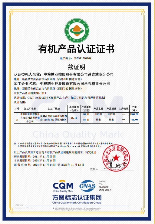 中粮有机白砂糖,产自新疆,有机种植和加工。