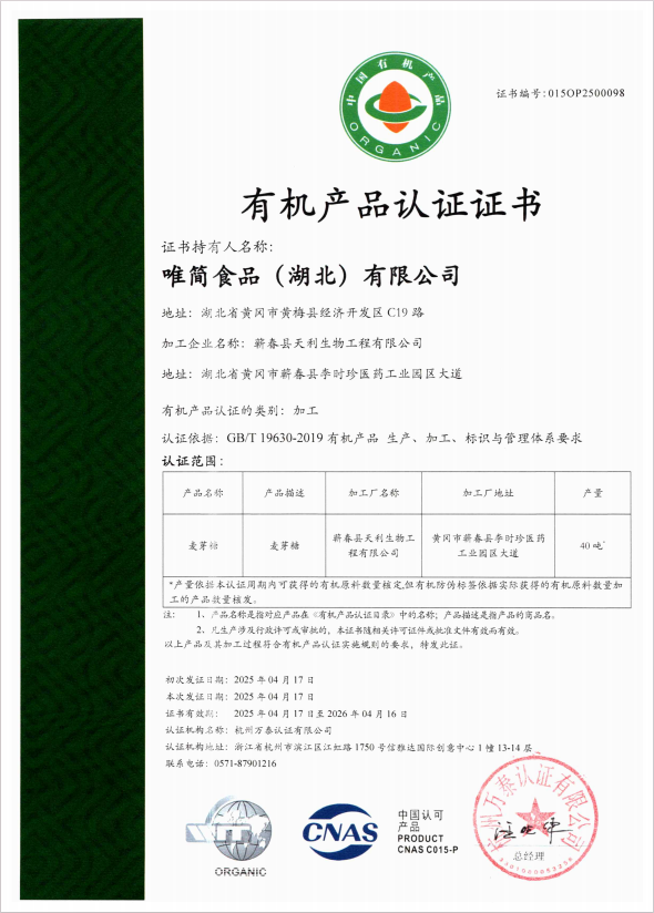 产于黄河入海口生态之城东营,专注有机20年,先后通过中、欧、美三国有机认证。