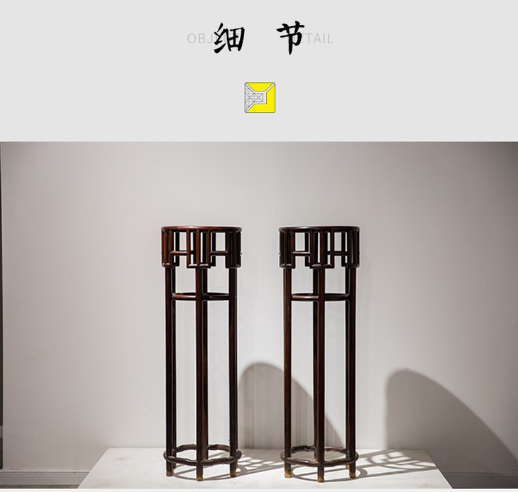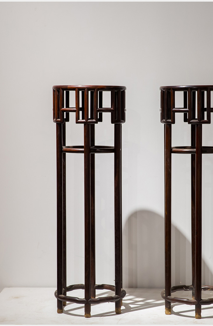 清代 红木攒牙子六足圆花几(一对)