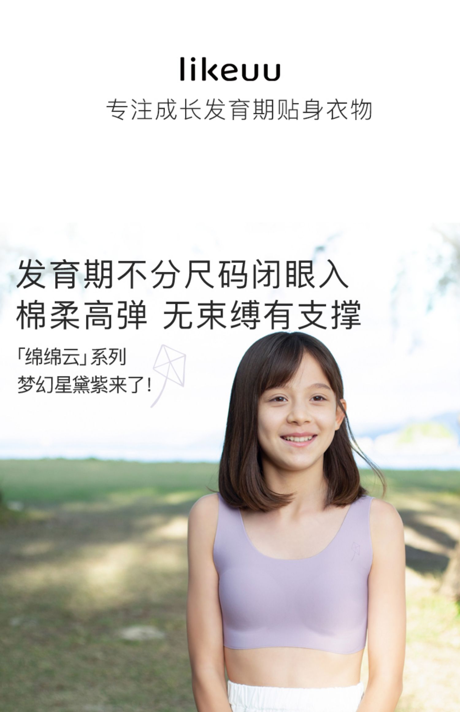 - likeuu是专注于为6~15岁的青少年创造柔软、无束缚的成长体验,以好奇心为灵感的成长发育期贴身衣物品牌。likeuu的产品覆盖内衣、内裤、保暖衣、家居服、运动等品类。