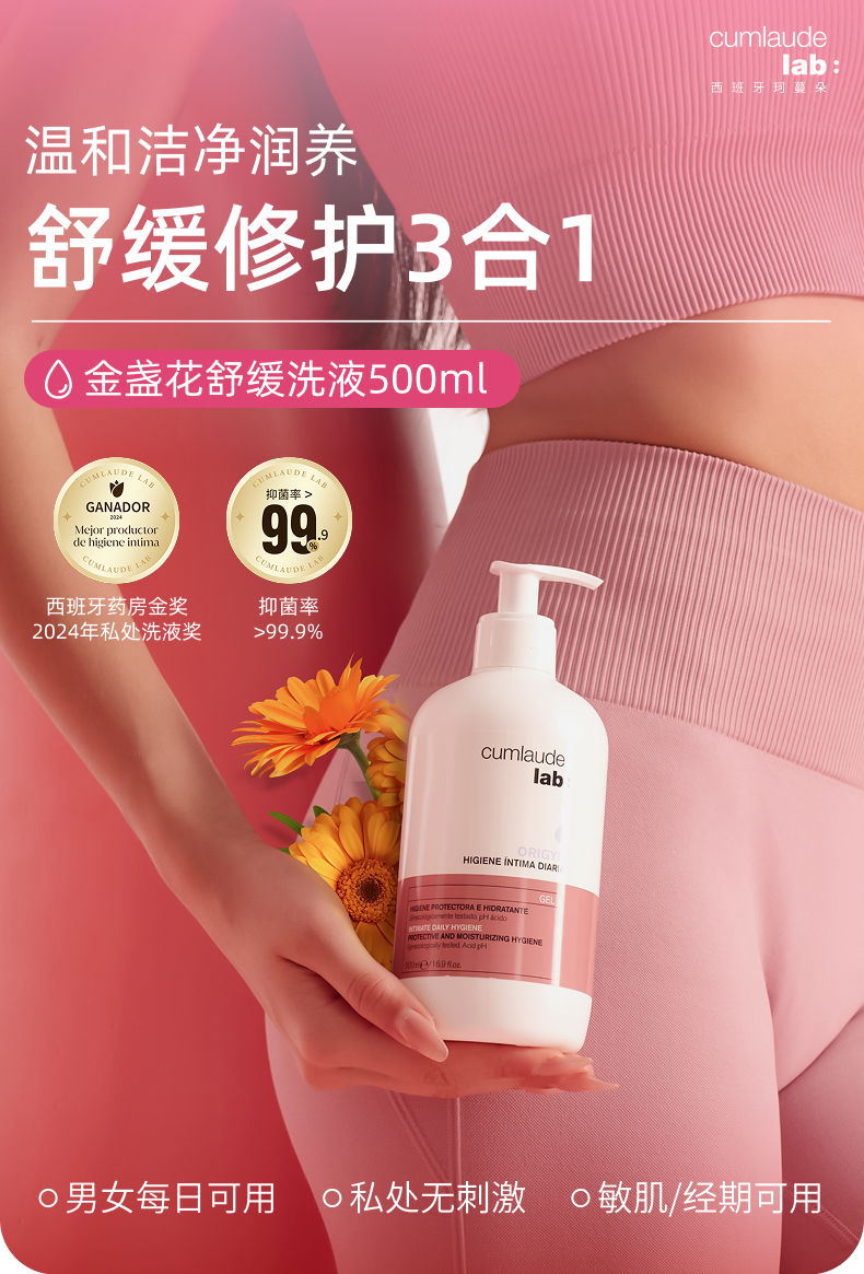 【伊能静同款 舒缓修护2合1】西班牙 珂曼朵 金盏花温和私处洗液 含玻尿酸500ml
