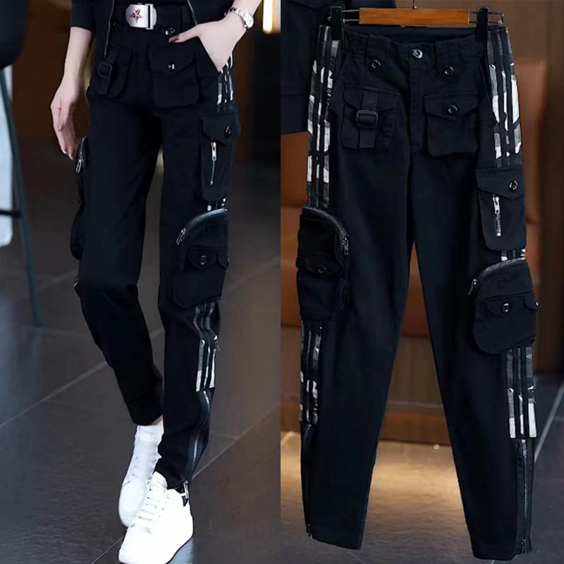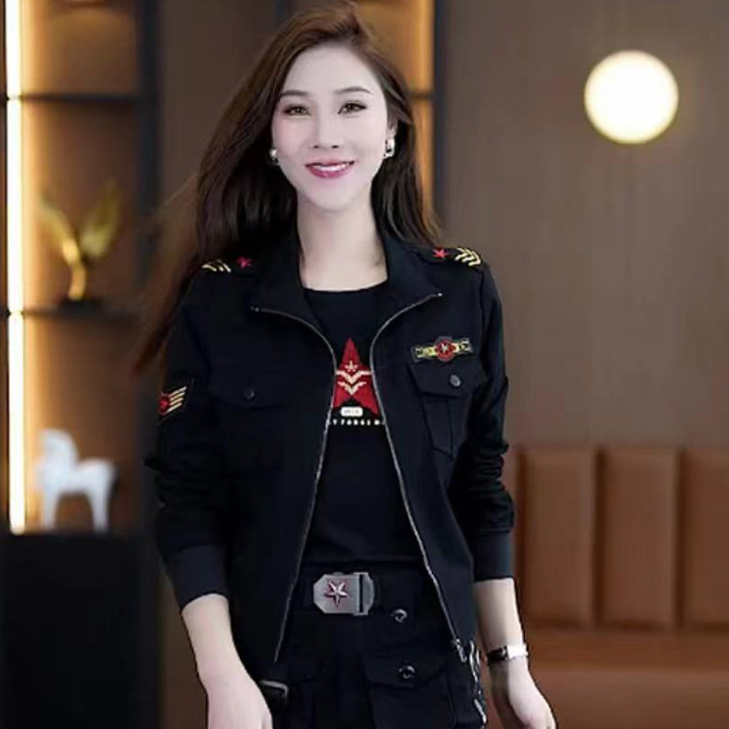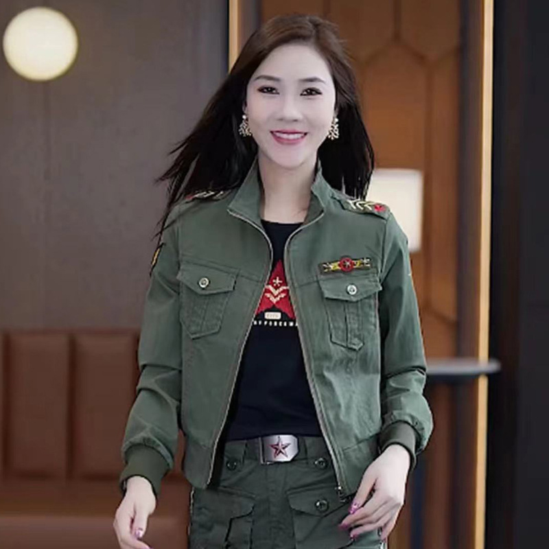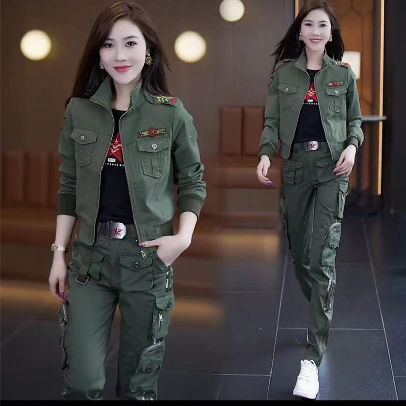 工装裤套装新款迷彩服套装女短外套迷彩工装长裤修身水兵舞服秋装
