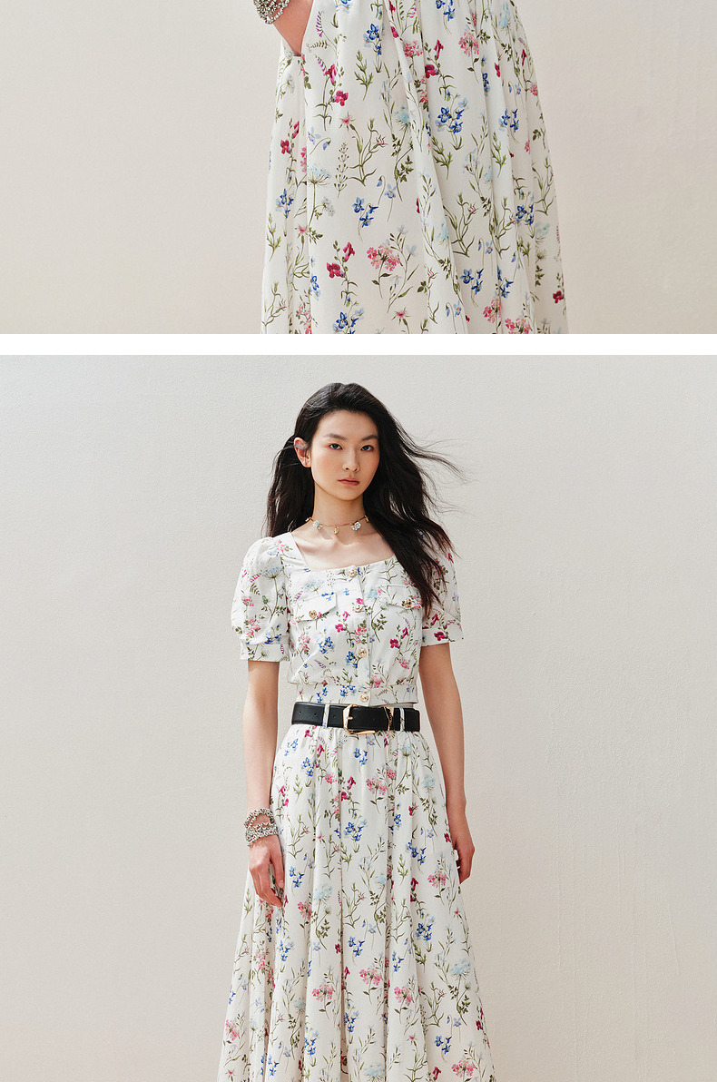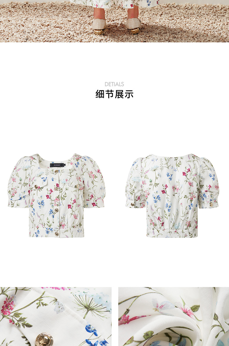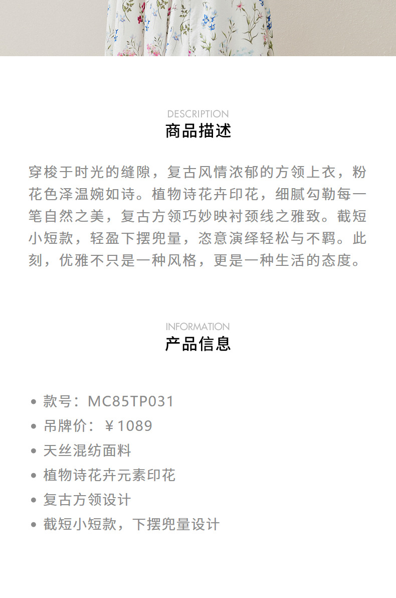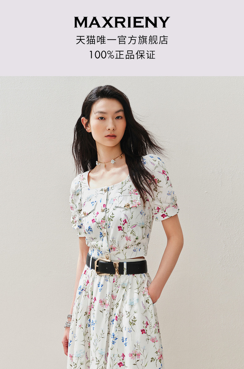 玛克门店发货【浪漫花园-商场同款】MAXRIENY复古优雅花卉印花上衣方领雪纺衫(货号:MC85TP031)