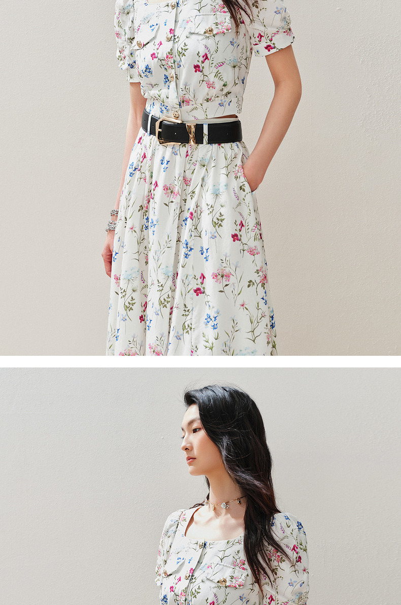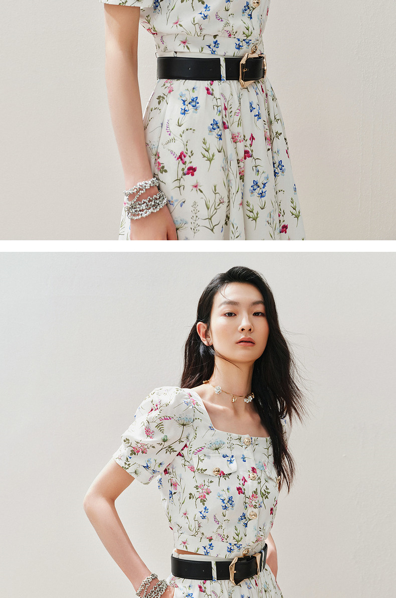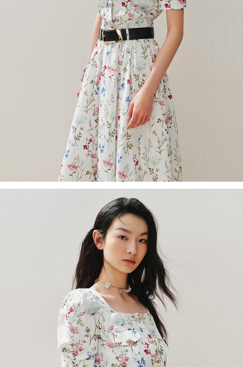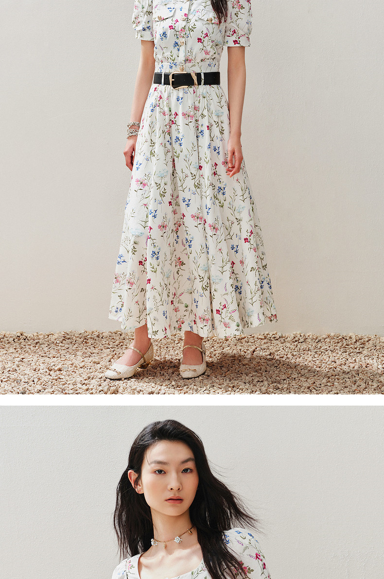 玛克门店发货【浪漫花园-商场同款】MAXRIENY复古优雅花卉印花上衣方领雪纺衫(货号:MC85TP031)