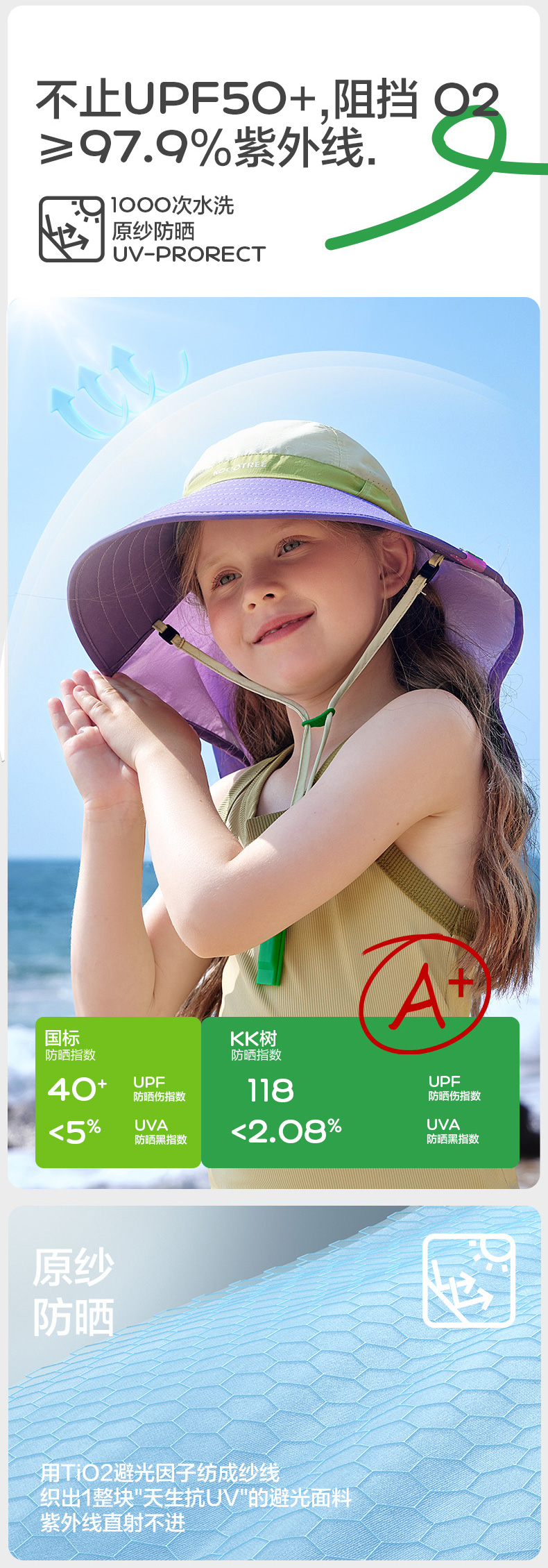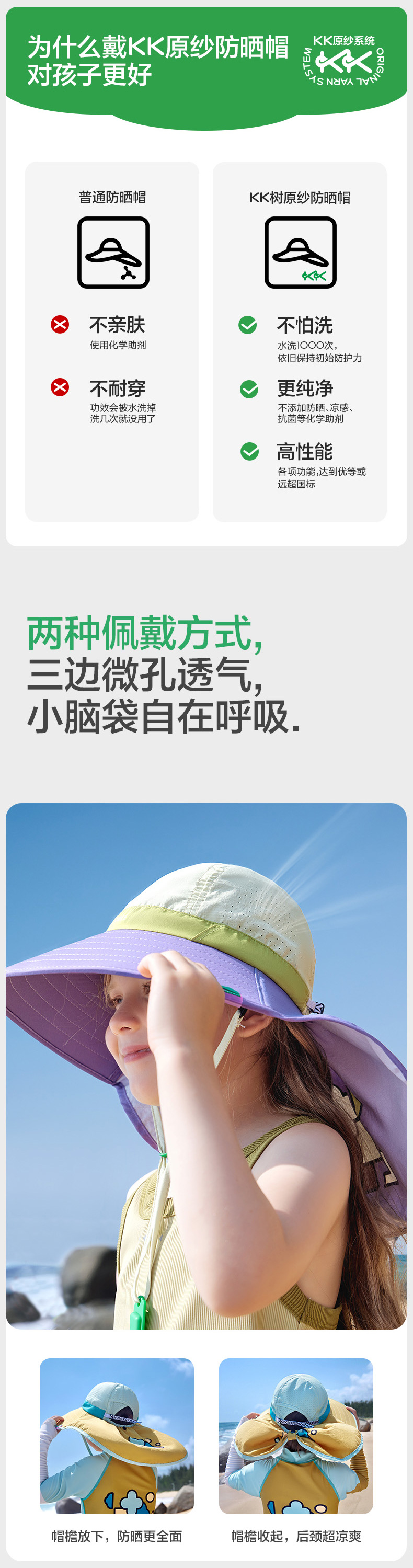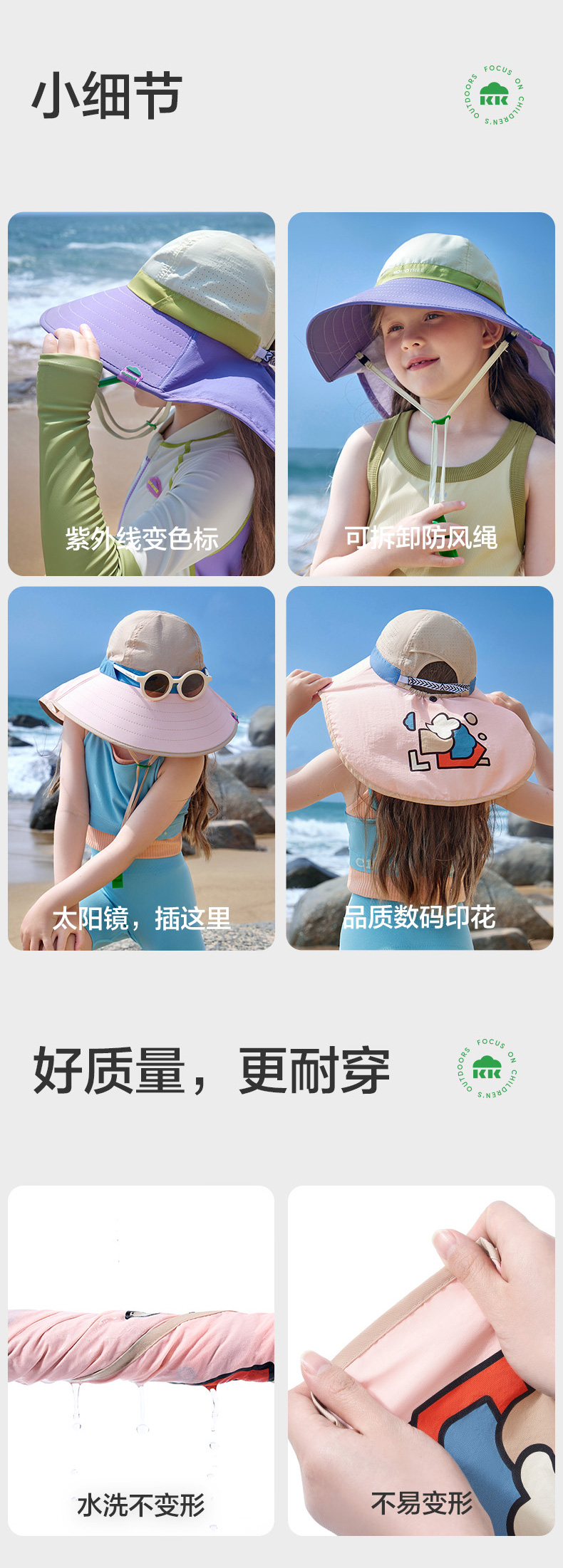 KK树儿童防晒帽原纱防紫外线男女童遮阳帽宝宝太阳帽2024新款夏季夏日艺术披风帽