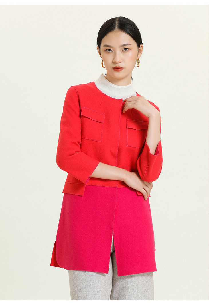 乔万尼圆领羊毛呢外套中长款拼接九分袖E154A281