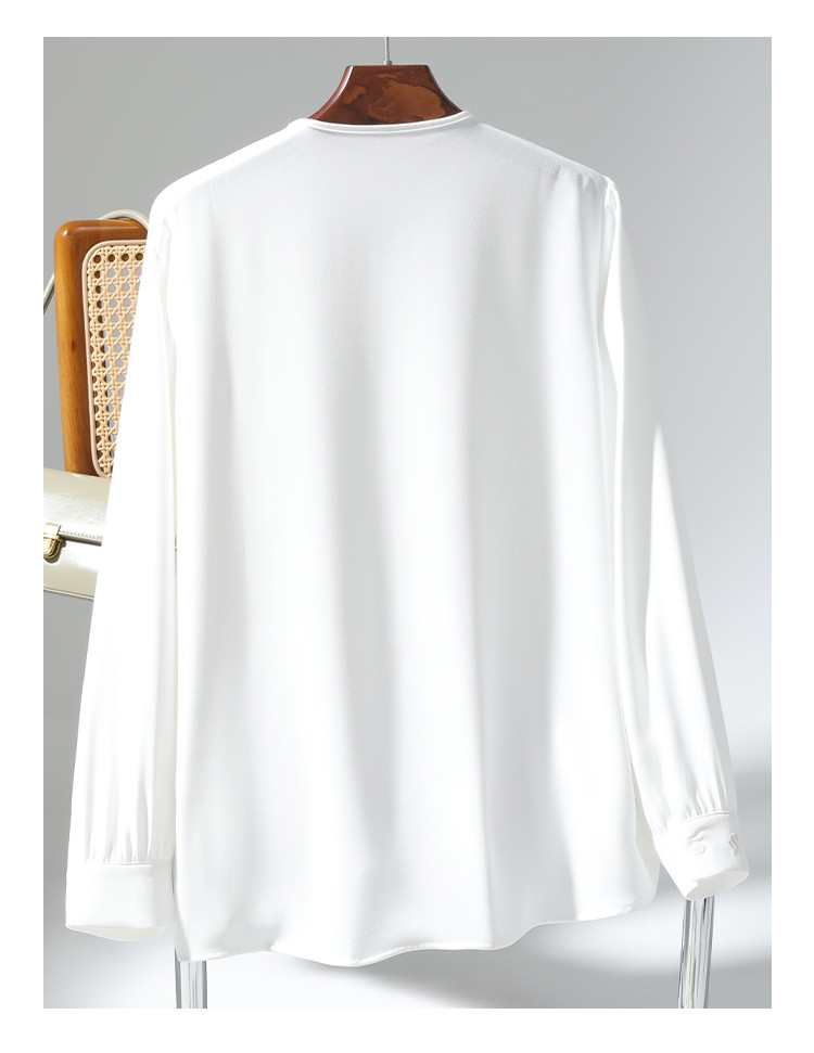 【商务简约】罗蒙女士长袖衬衫舒适百搭优雅通勤圆领系扣衬衫女