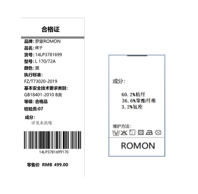 面料:60.2%粘纤 36.6%聚酯纤维 3.2%氨纶