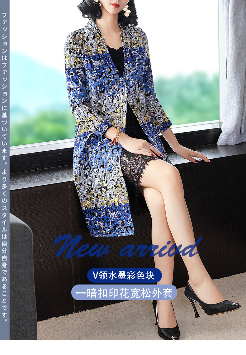 NYT-004秋冬新款宽松时尚印花优雅端庄中长款风衣