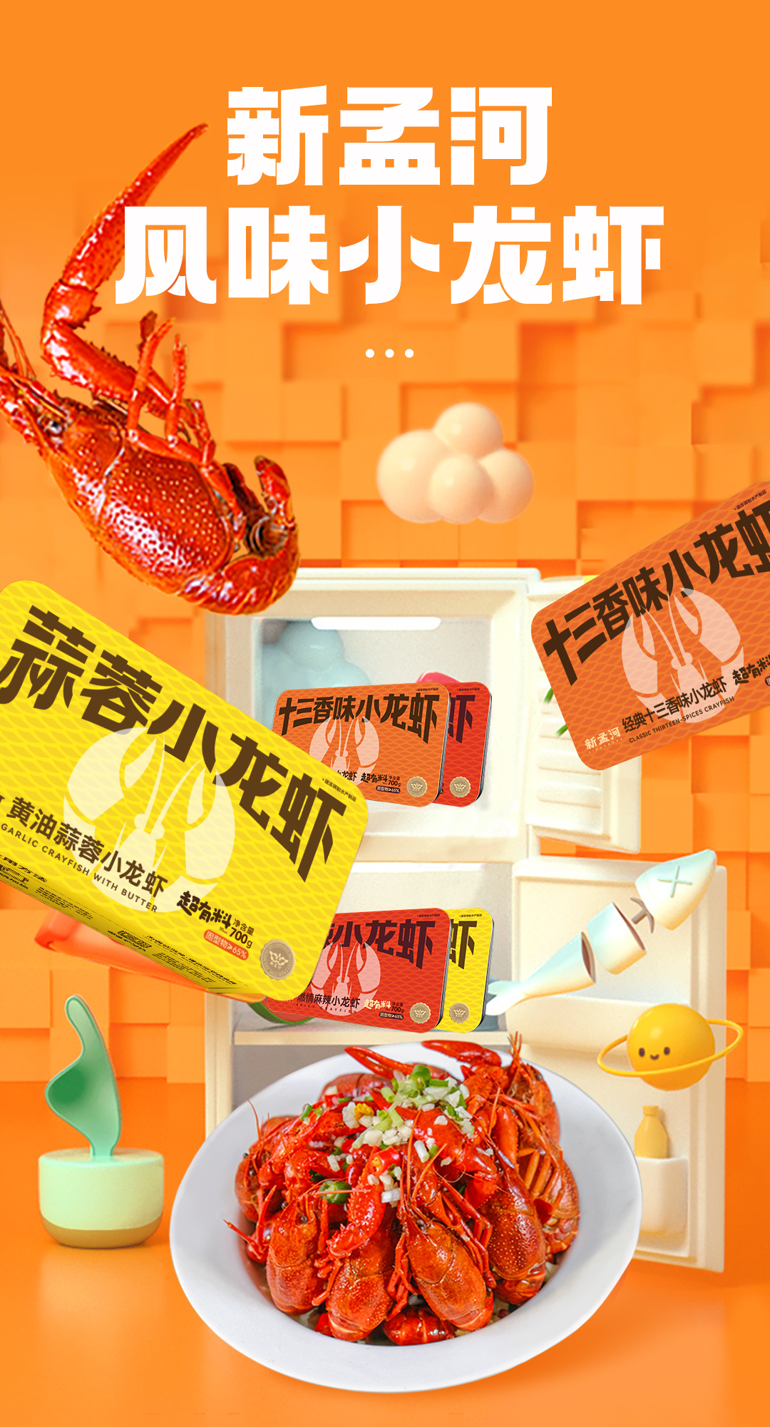 【特大号龙虾 买2送1】新孟河风味小龙虾700g/盒 8-11只/盒 麻辣 蒜泥 十三香口味 液氮锁鲜 方便熟食
