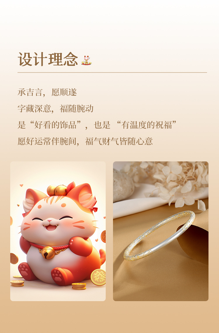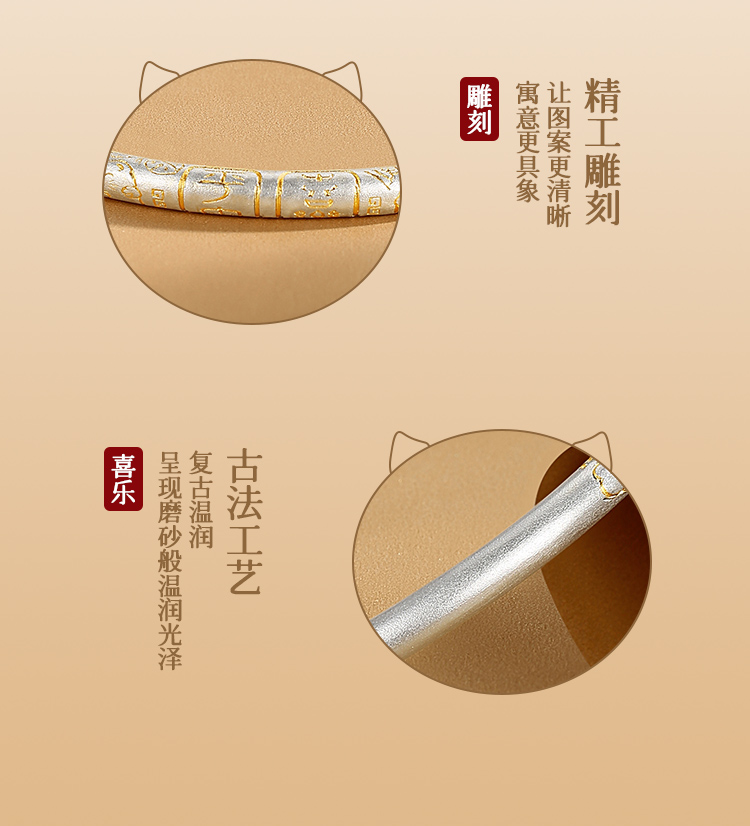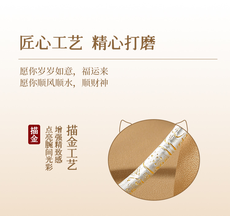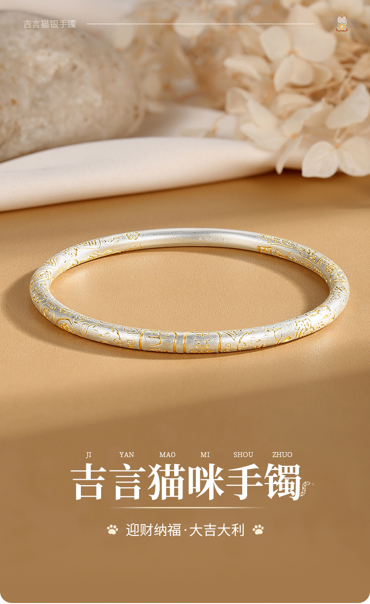 【Winy】足银9999平安喜乐招财猫手镯银色描金25±1g配证书送女朋友/老婆/闺蜜生日节日礼物