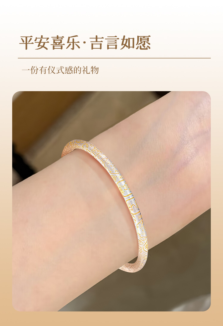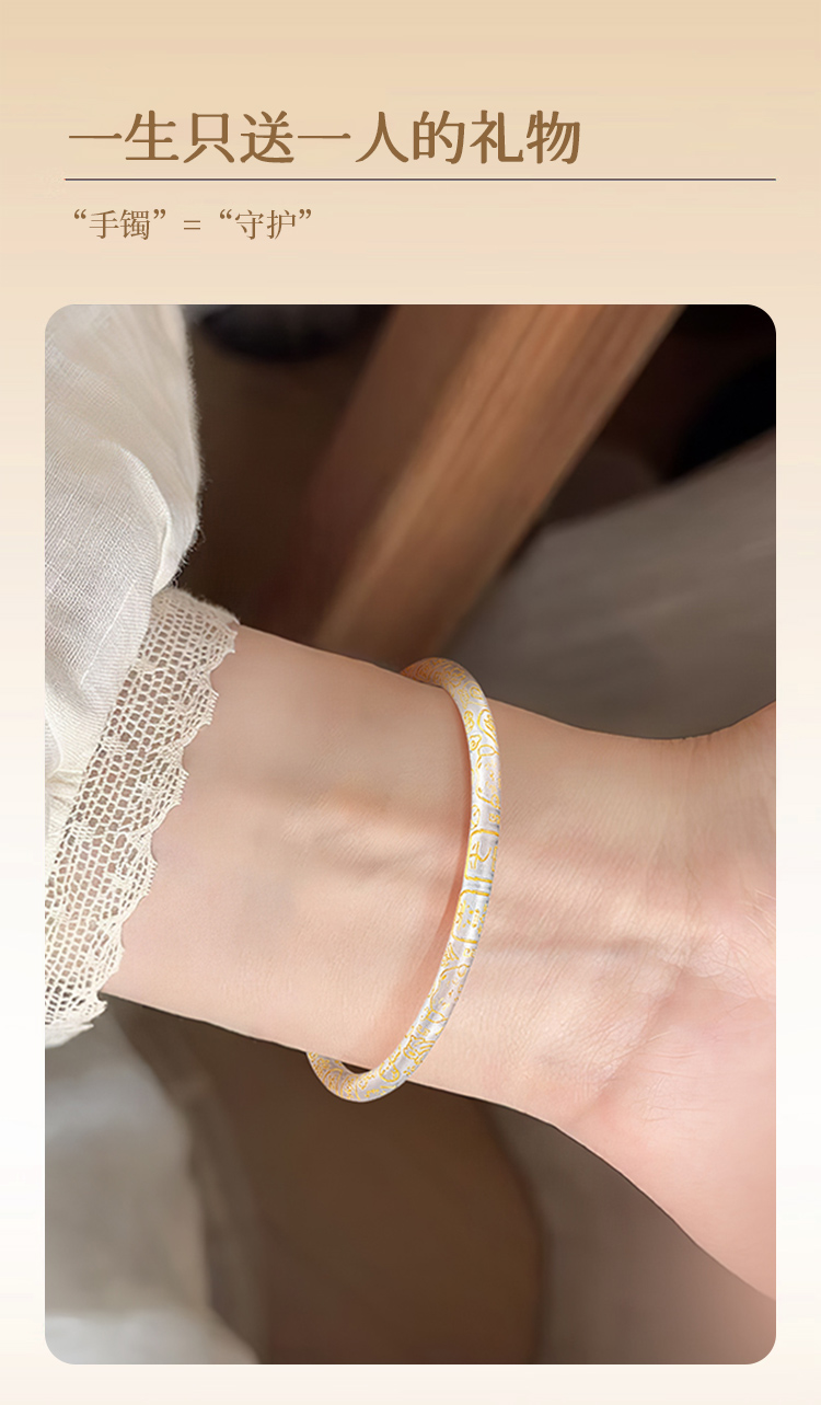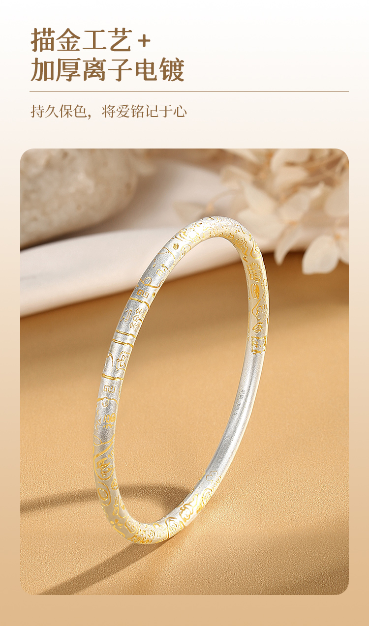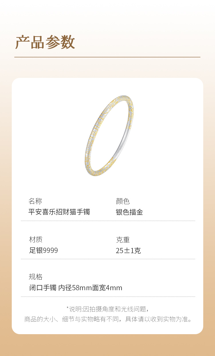 【Winy】足银9999平安喜乐招财猫手镯银色描金25±1g配证书送女朋友/老婆/闺蜜生日节日礼物