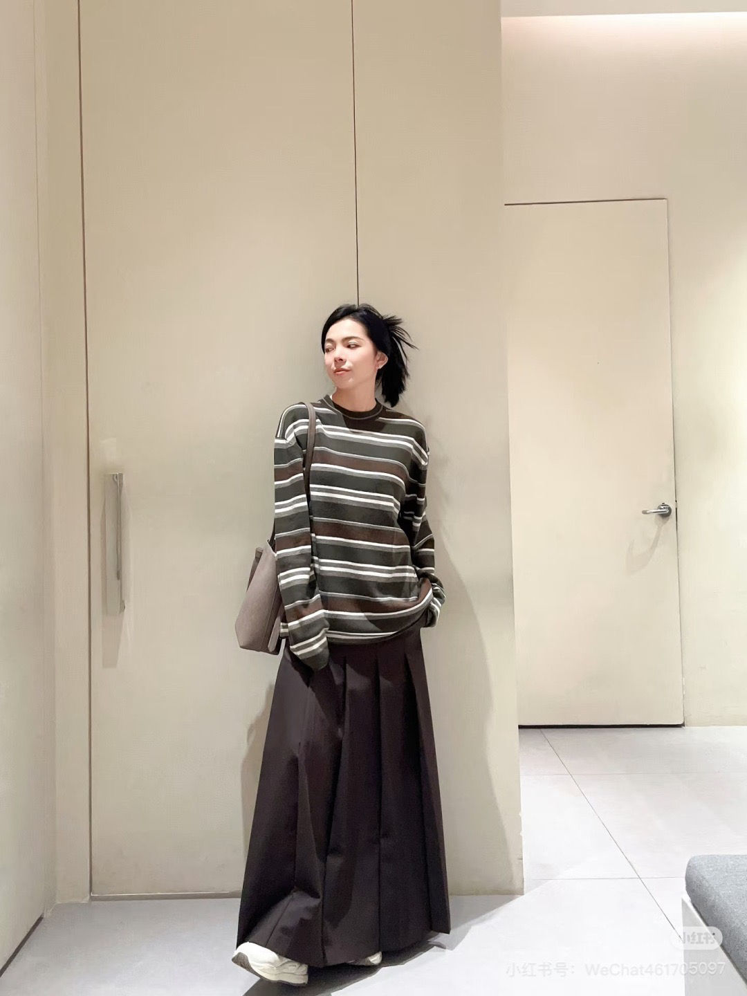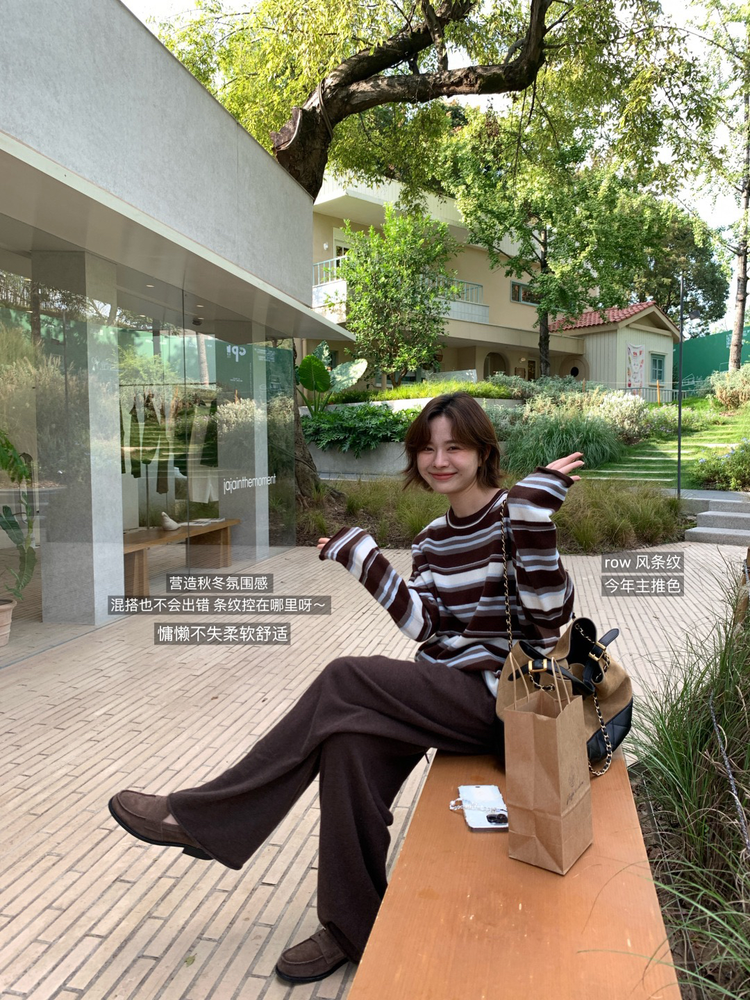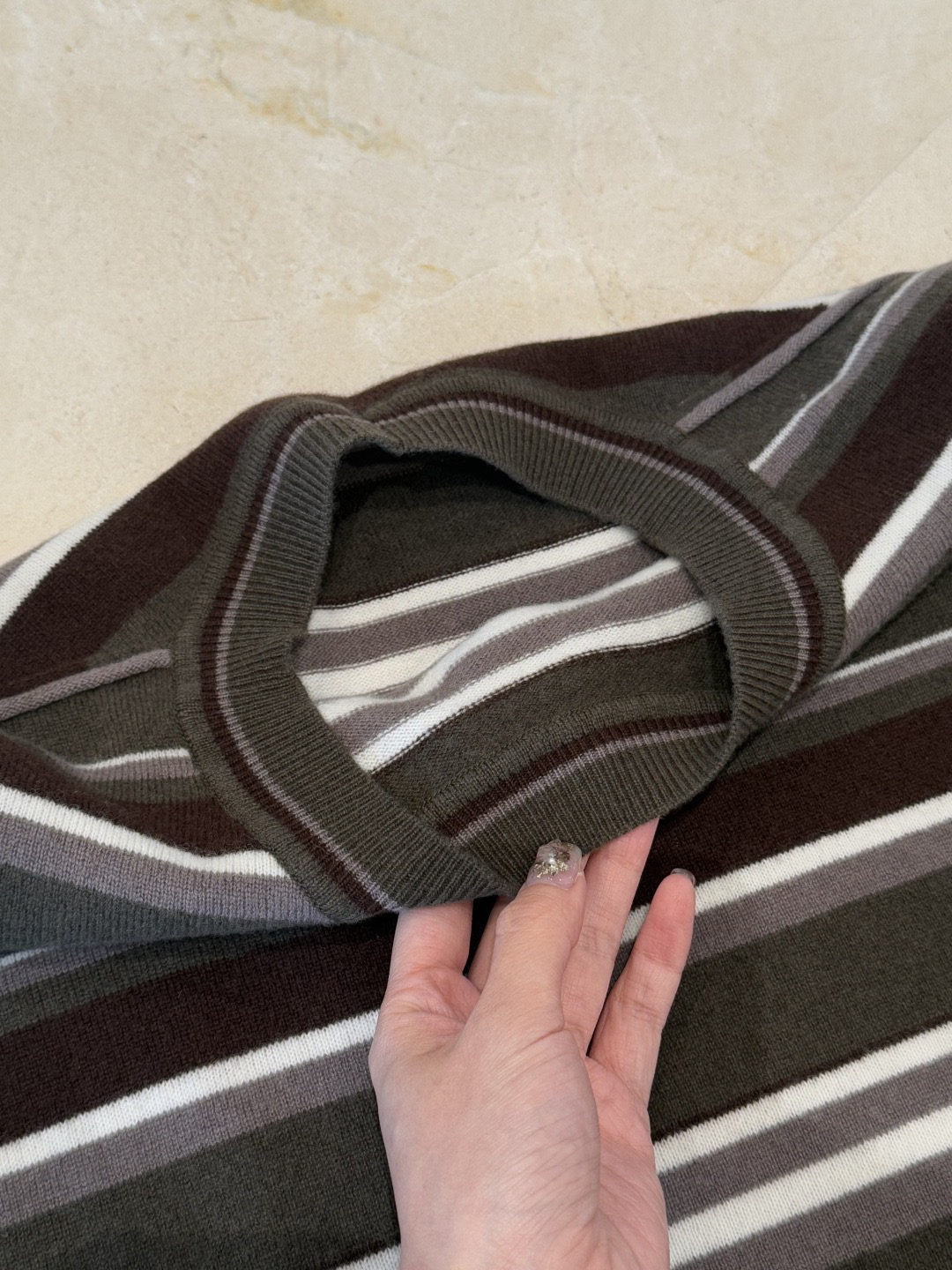 定染纱线不会老气撞衫 律动层次感条纹宽窄排列更新颖洋气 加上羊毛的舒适度 那个糯感 真的好舒服 慵懒秋冬