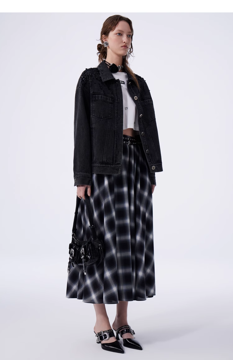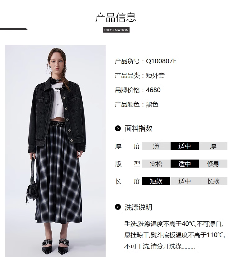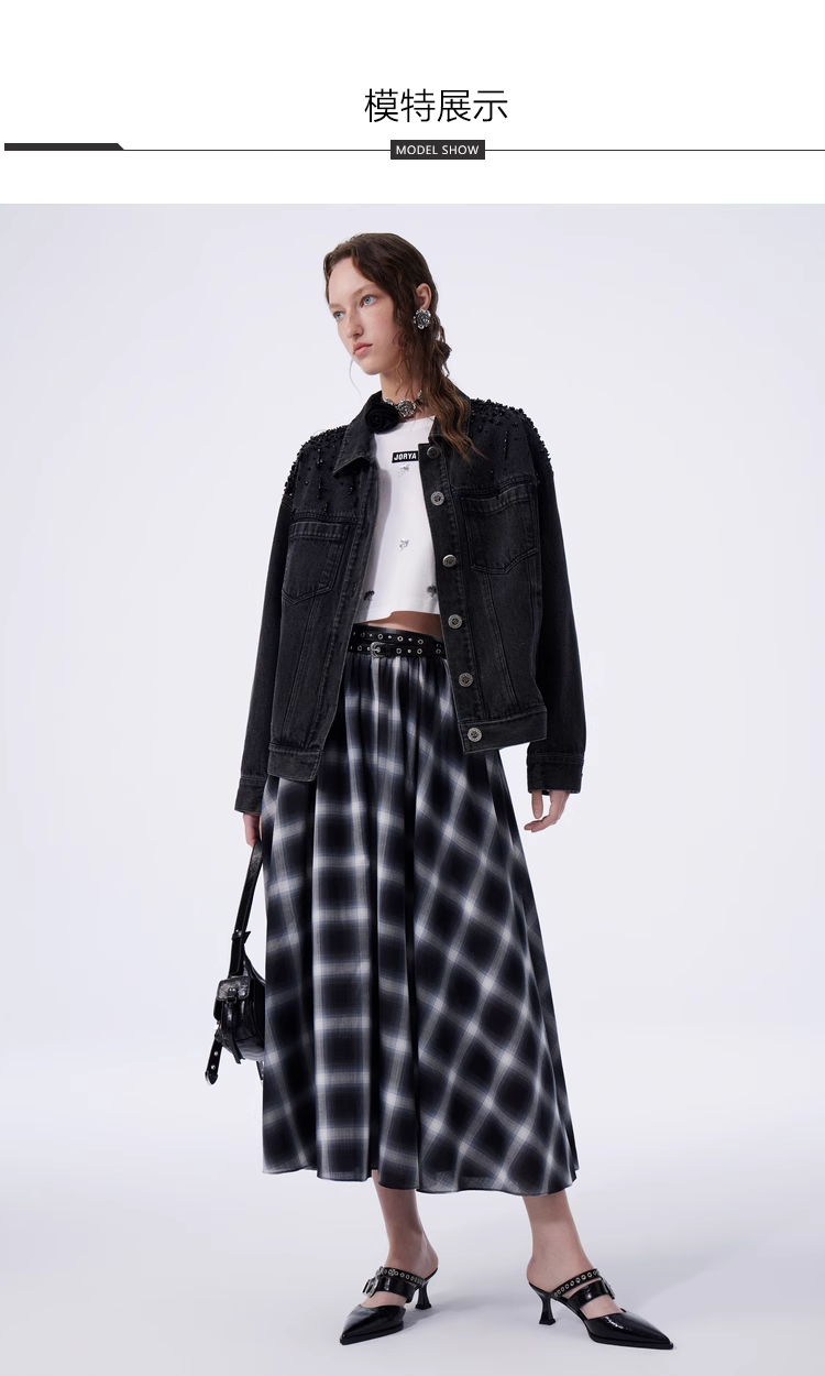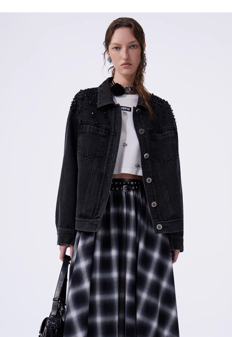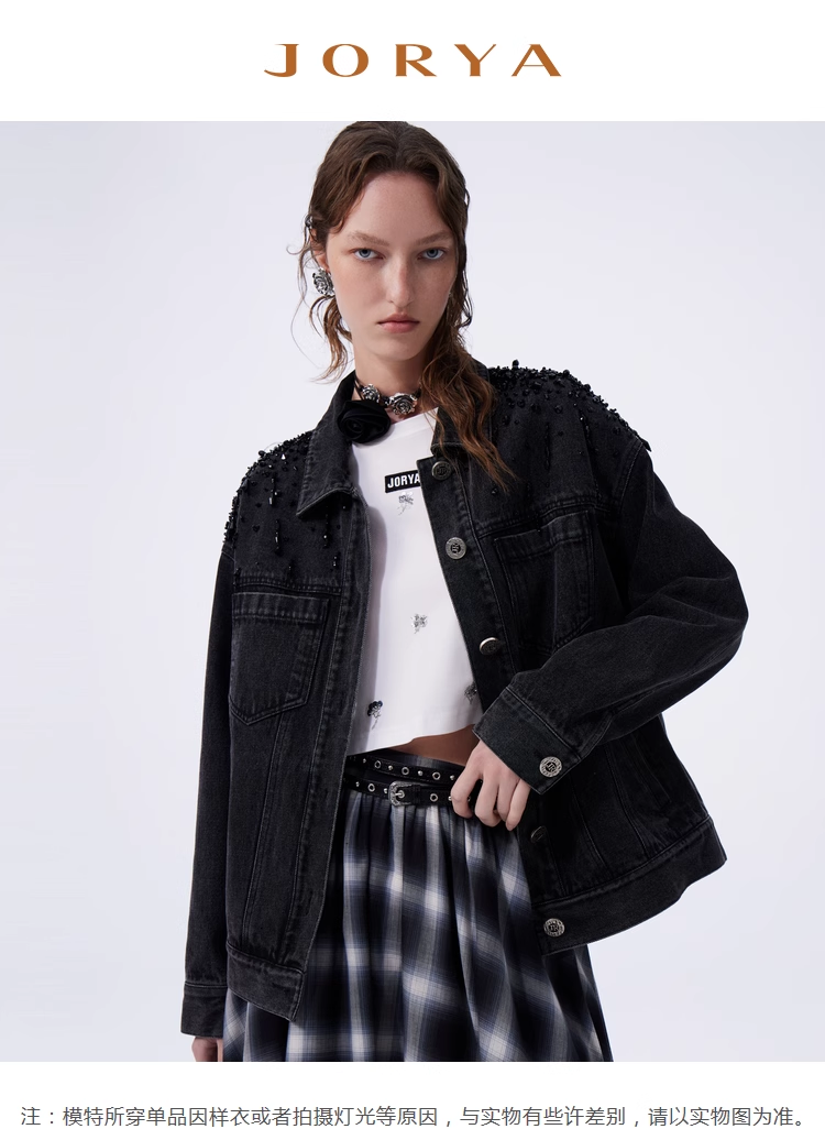 JORYA2024新款闪耀钻饰点缀落肩袖牛仔外套 Q100807E
