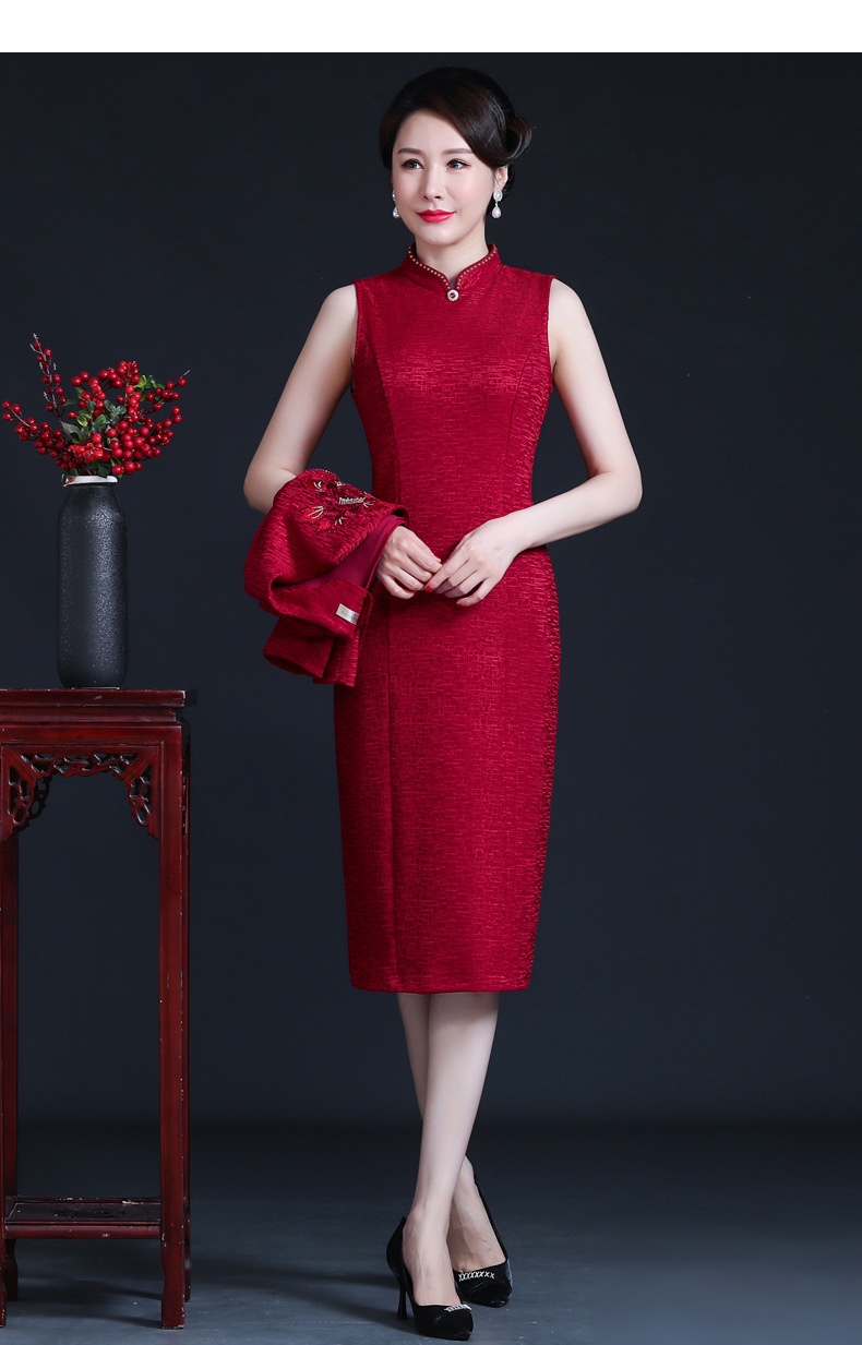 上海旗袍厂JC-JY5106婚礼气质时尚喜庆宴会婆婆礼服改良版旗袍套装连衣裙