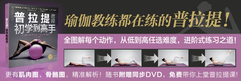 瑜伽教练都在练!专为中国普拉提爱好者编写的教程,全图解每个动作,从低到高任选难度,进阶式练习之道!更有骨骼图、肌肉图,精准解析!随书附赠同步练习DVD,免费上堂普拉提课。