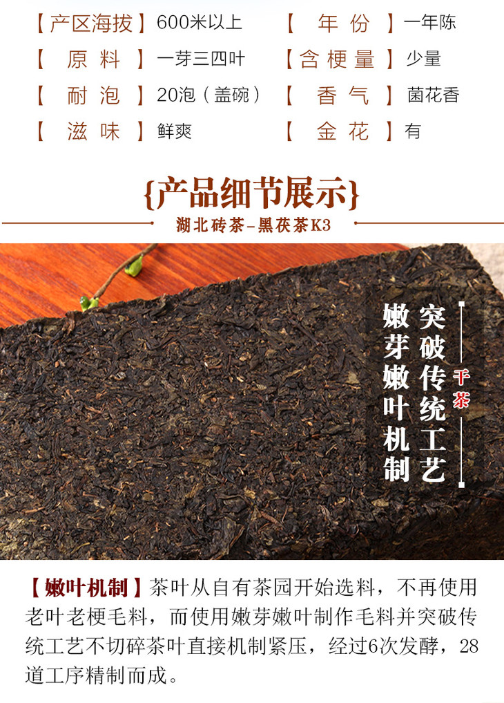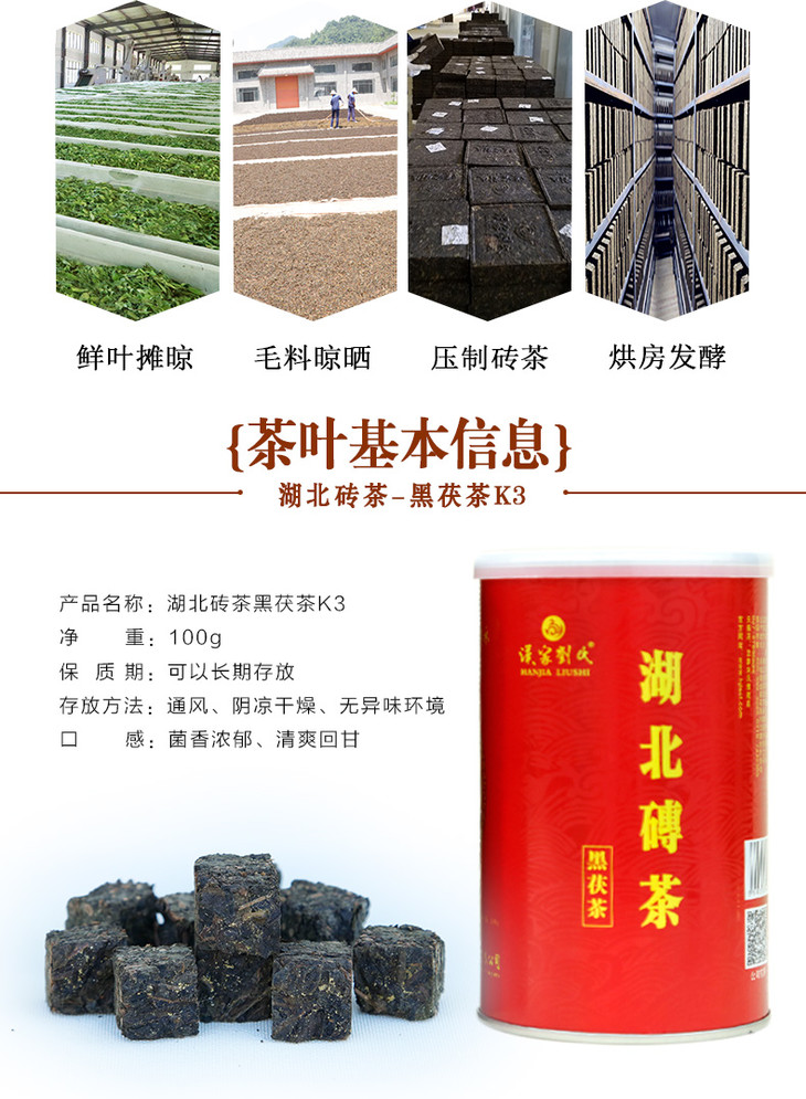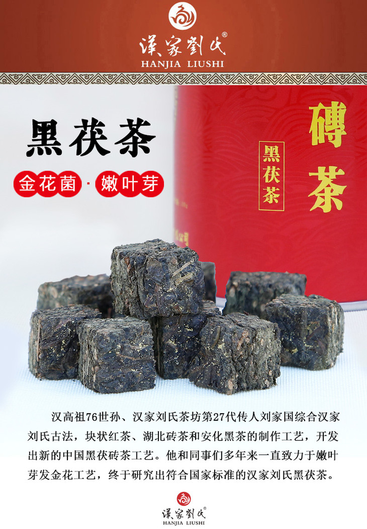 汉家刘氏 黑茶 茶叶 正宗金花黑茯砖茶 湖北砖茶 散装直泡 免撬黑茶 100g
