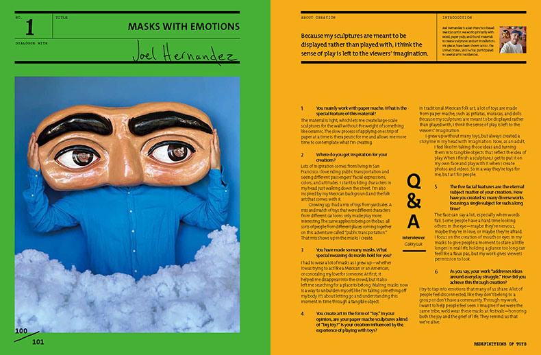 只要能够为人们带来积极情绪与体验的,都能被称为“玩具”。编辑部与来自7个国家的8组玩具设计师及艺术家进行了独家专访。他们的玩具载体各不相同:纸糊面具、由废弃物品拼装而成的概念玩具、俄罗斯套娃、手动风旋玩具、大型木雕、积木、陀螺和微缩人偶。他们用形态各异的载体向人们传递了同样的信息:玩具虽小,却有无穷大的力量。