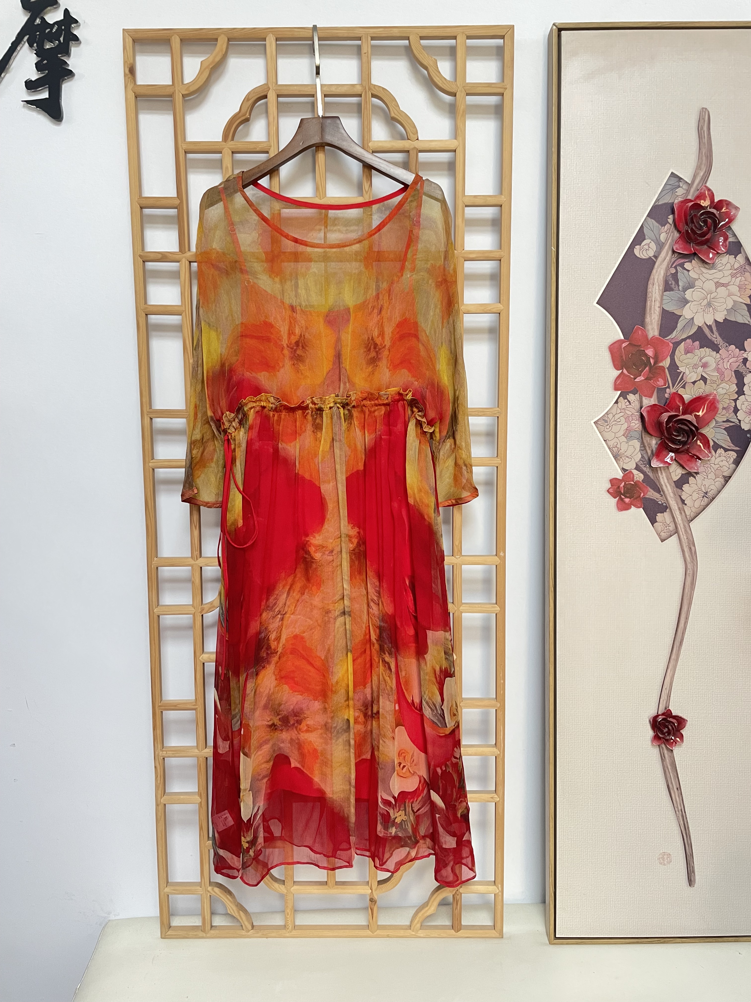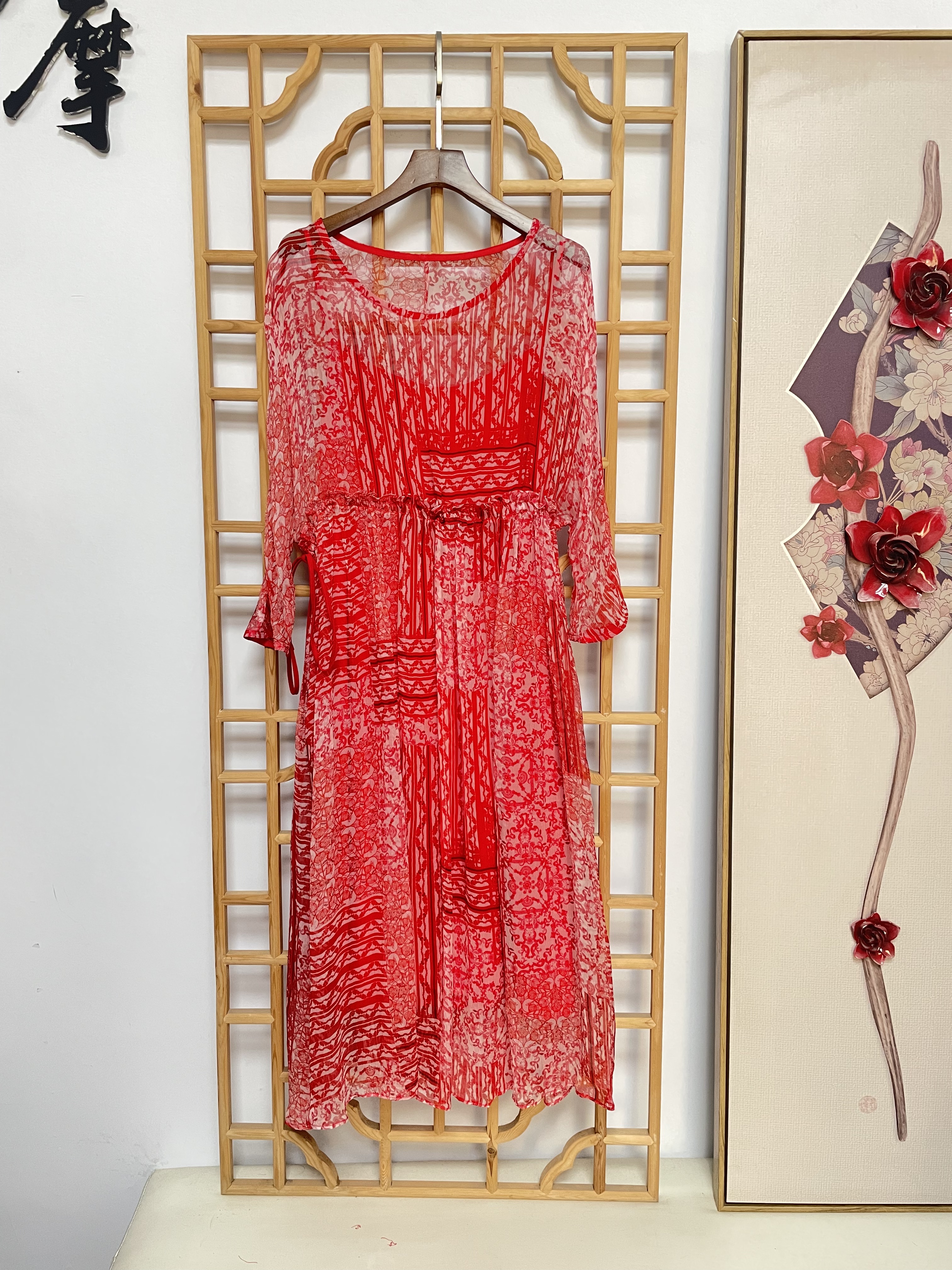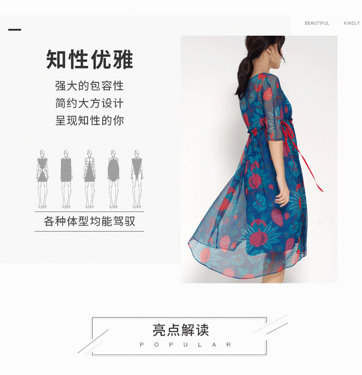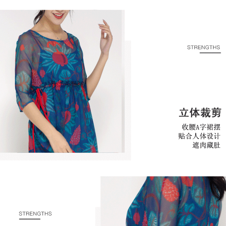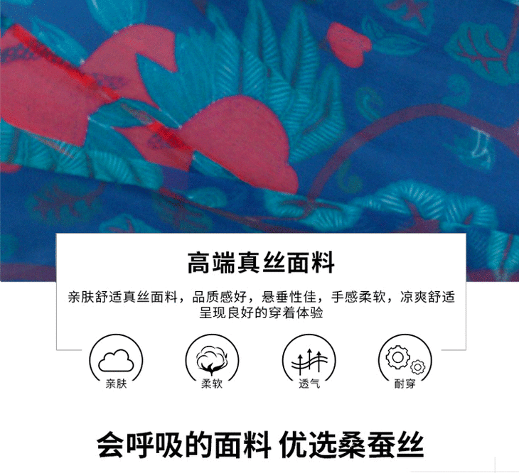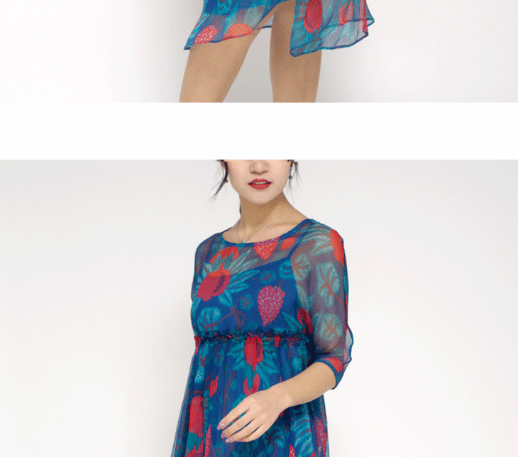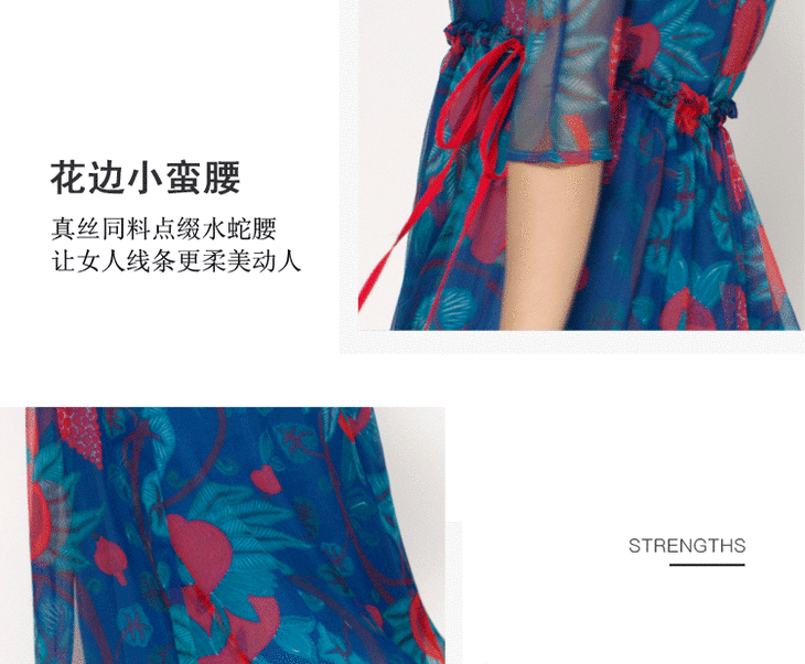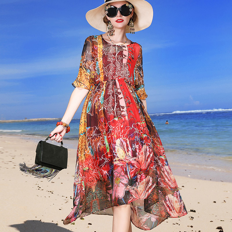 丁摩 真丝连衣裙印花时尚海边度假桑蚕丝连衣裙20-80DA499