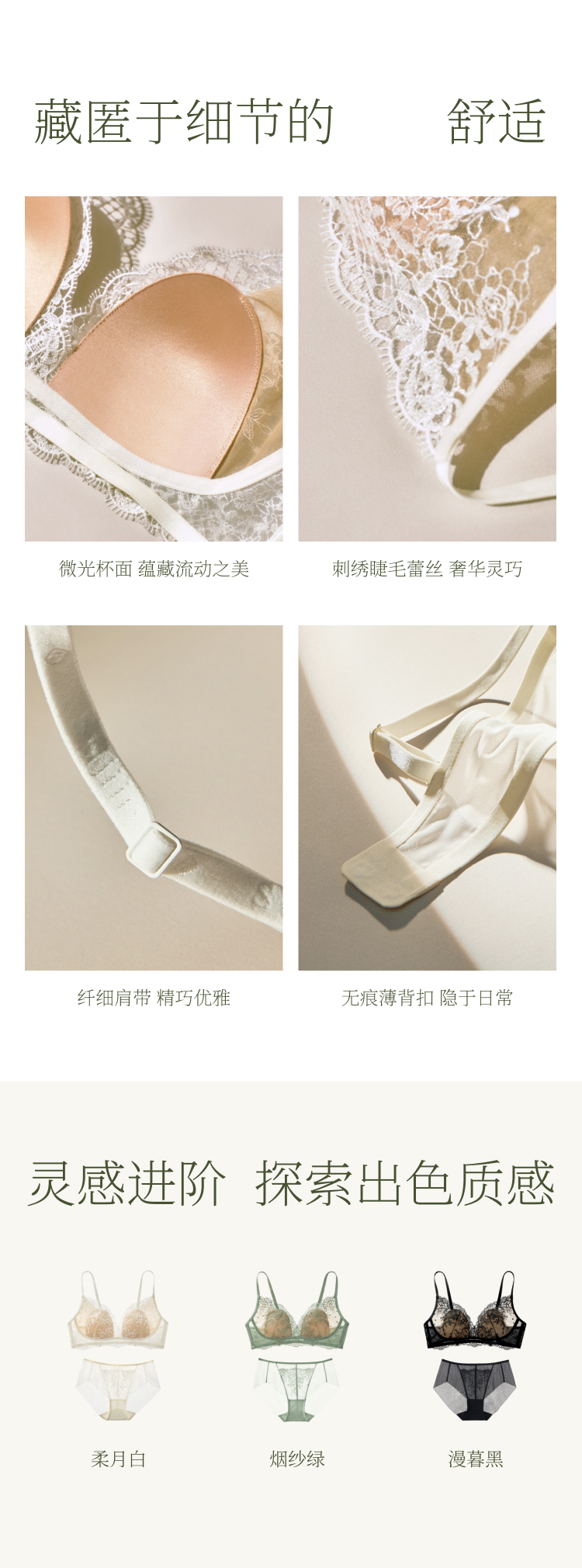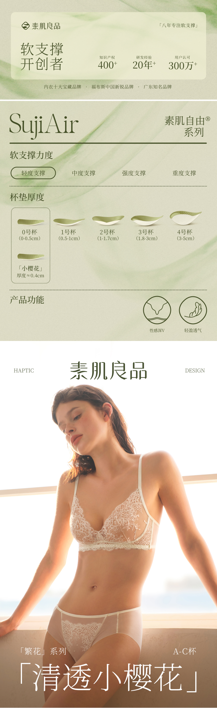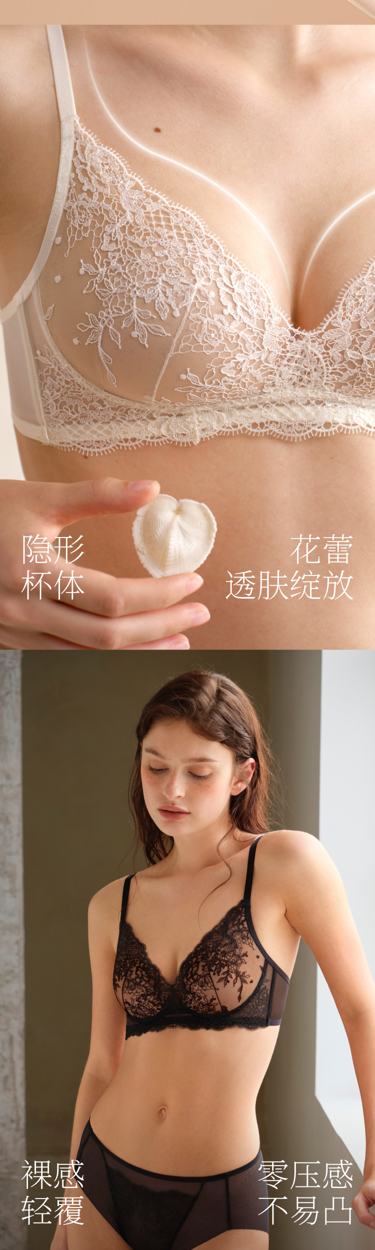 素肌良品 【小樱花】刺绣蕾丝内衣女性感小胸聚拢黑色法式文胸套装MX287