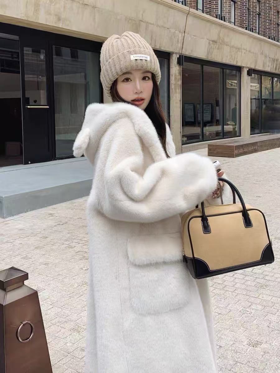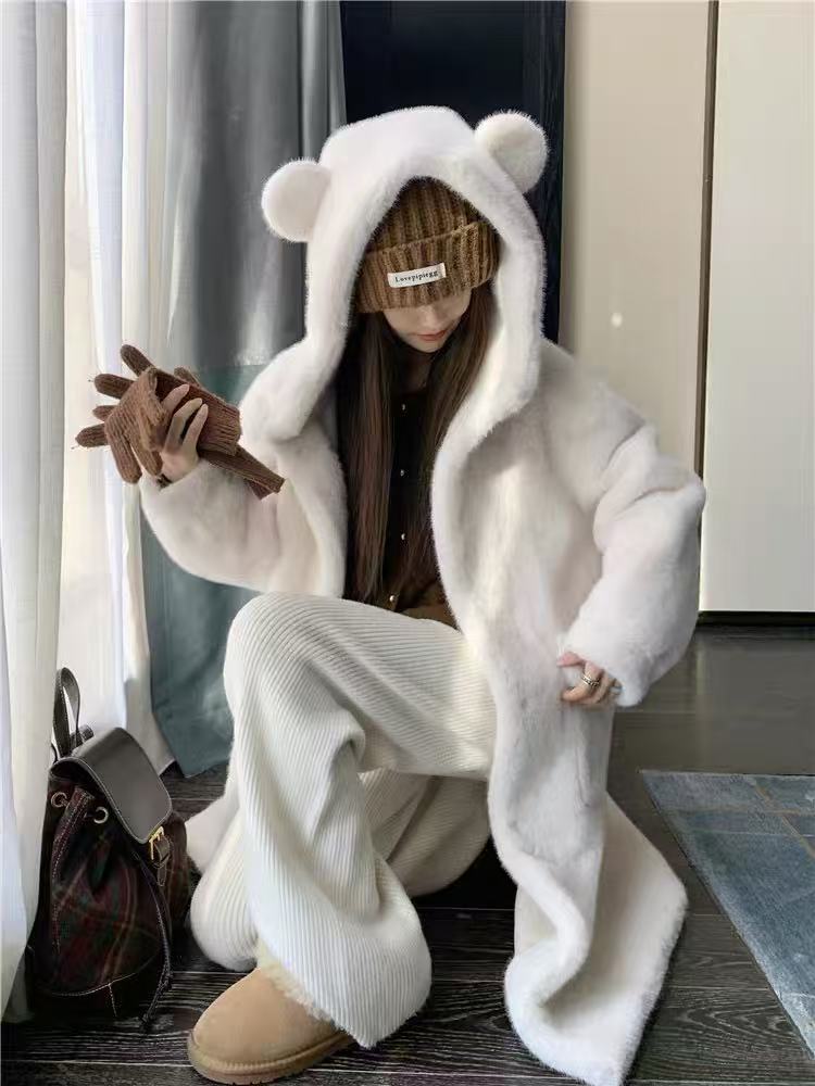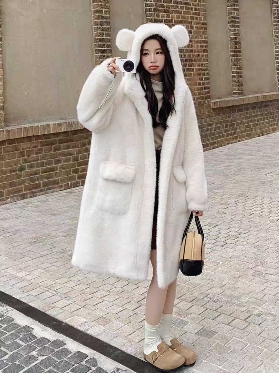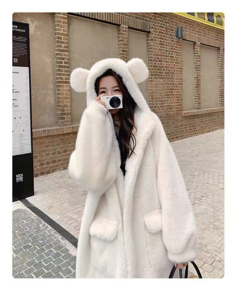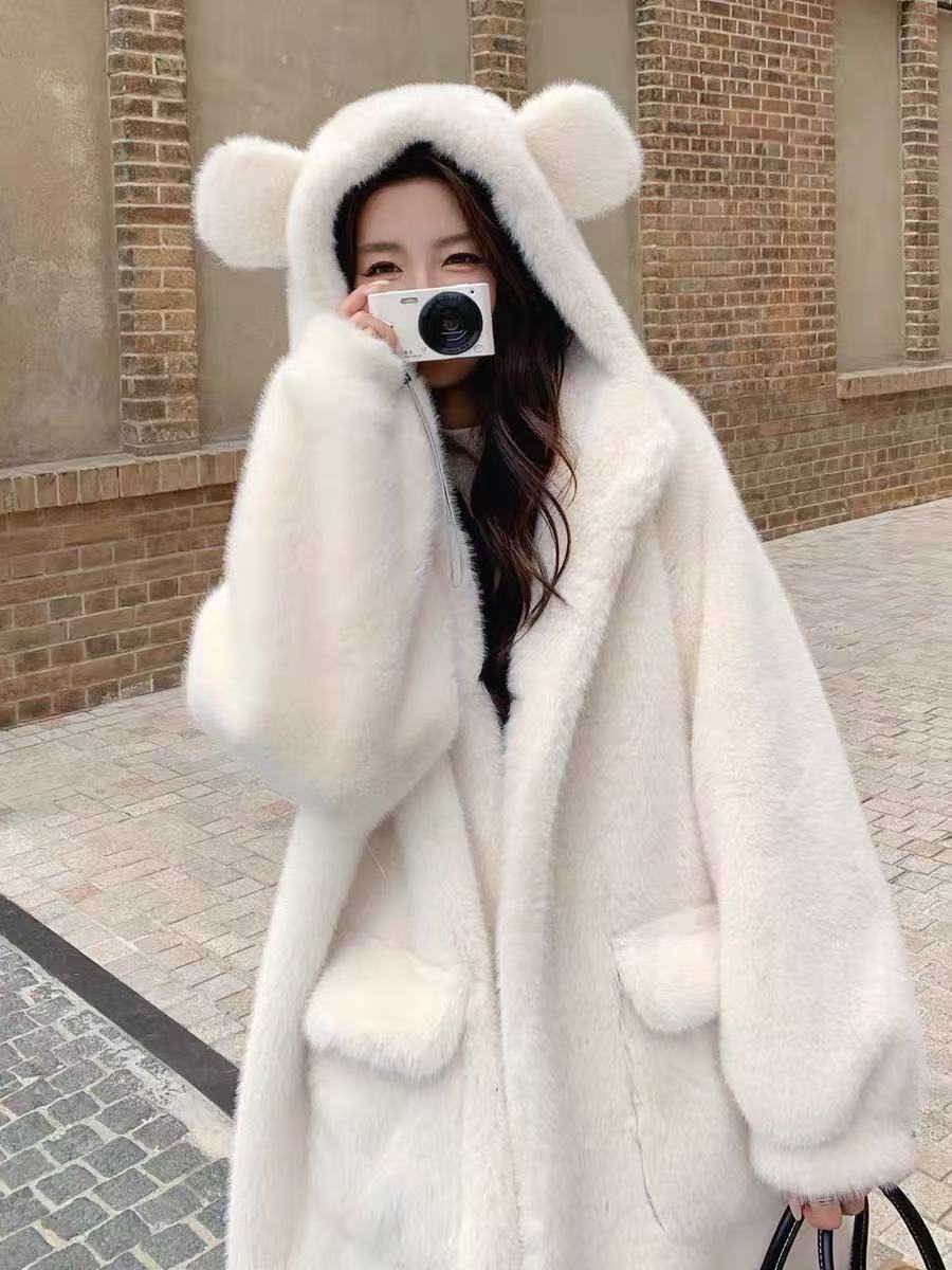 【冬季系列】环保水貂(连帽款)可爱减龄加厚款小熊耳朵保暖外套大衣-喜出