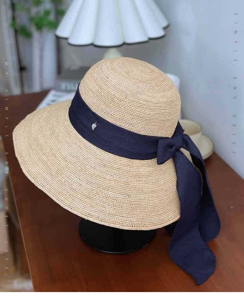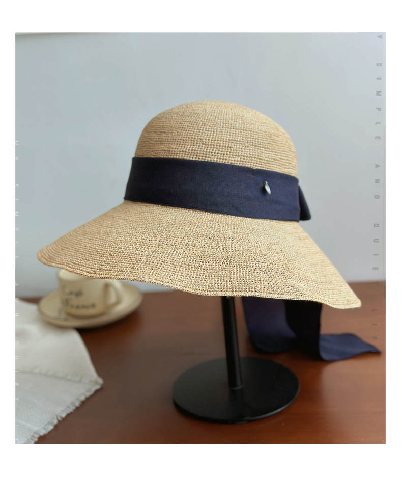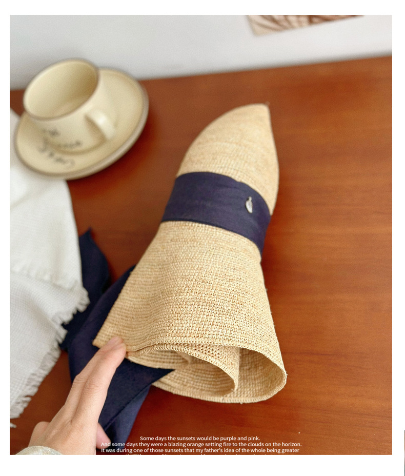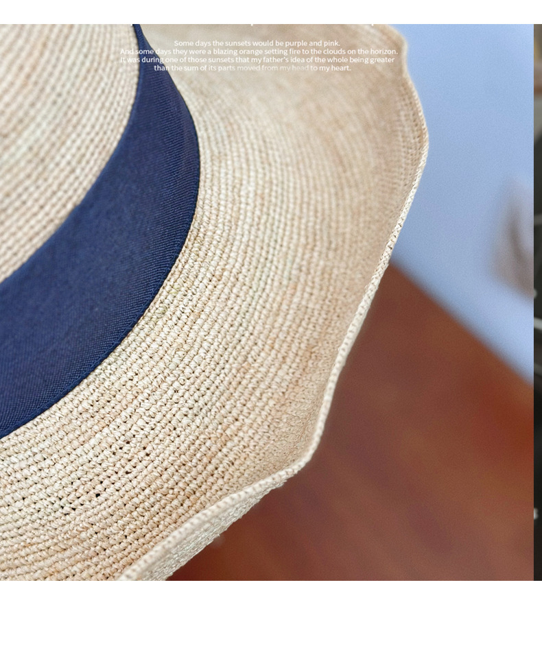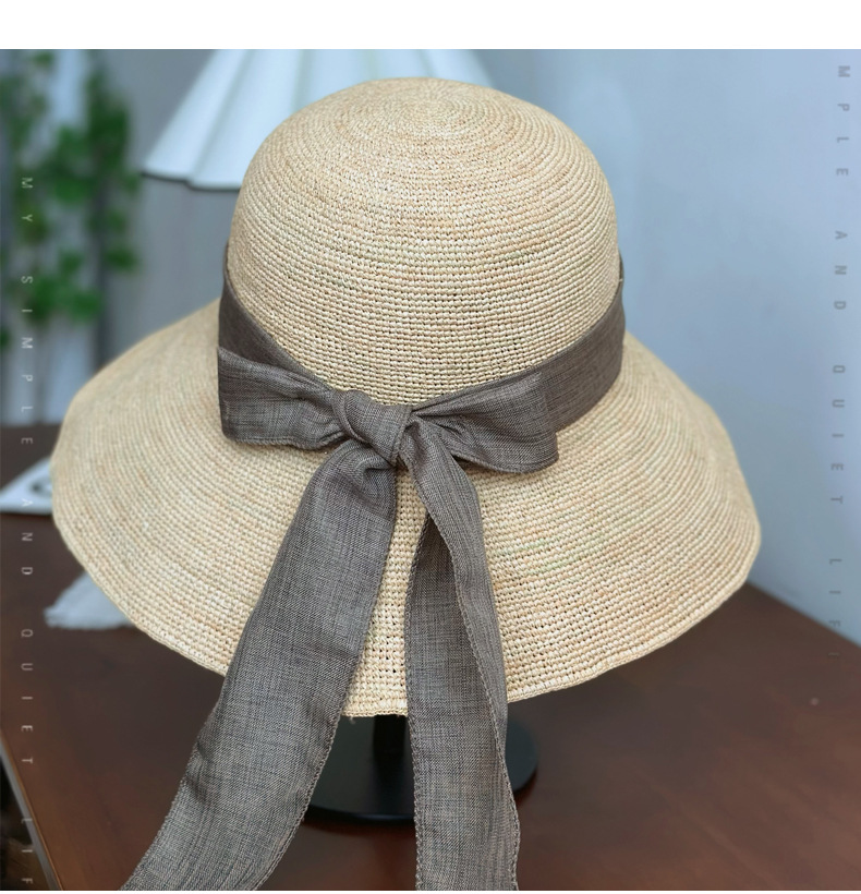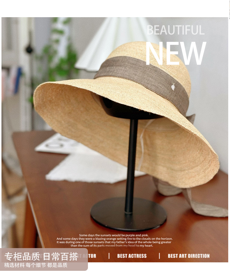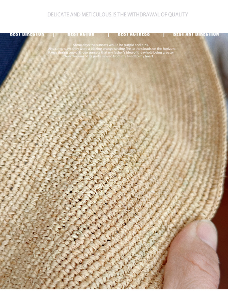 丁摩 【可折叠】超细拉菲草帽夏季手工编织天然植物大檐渔夫帽简约大牌5ZF-2901