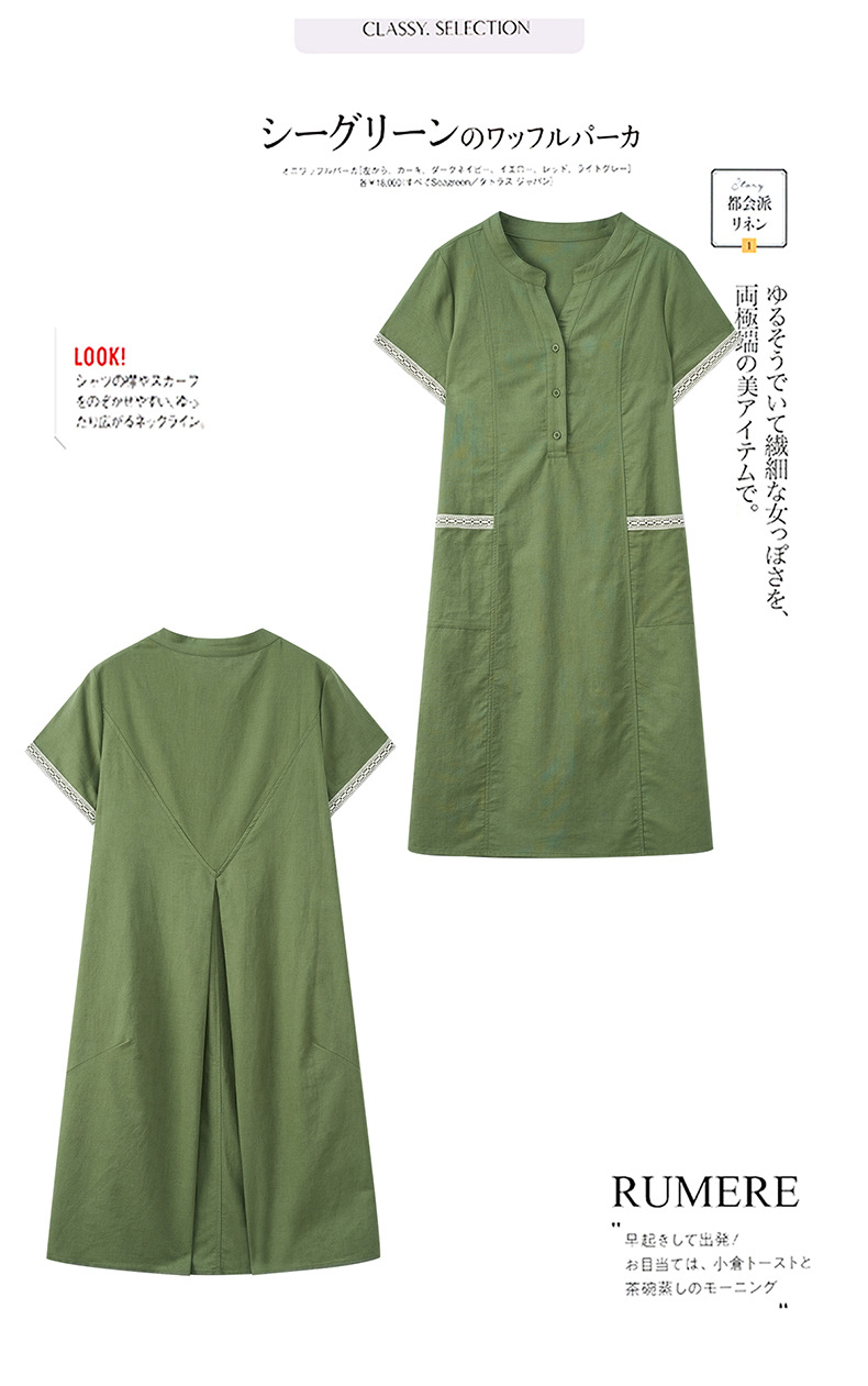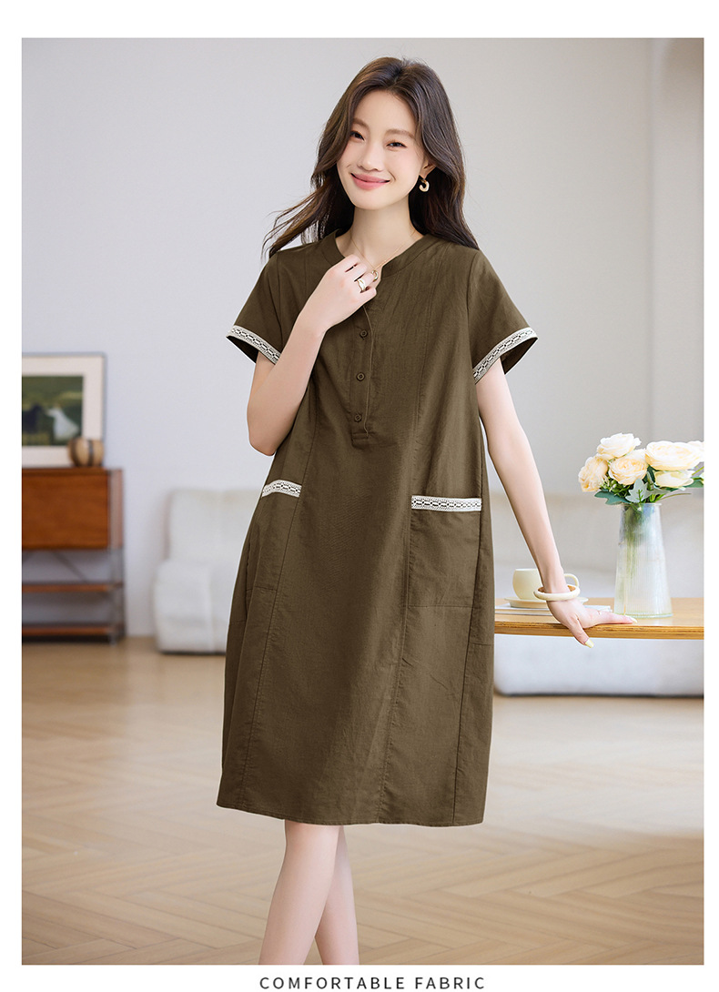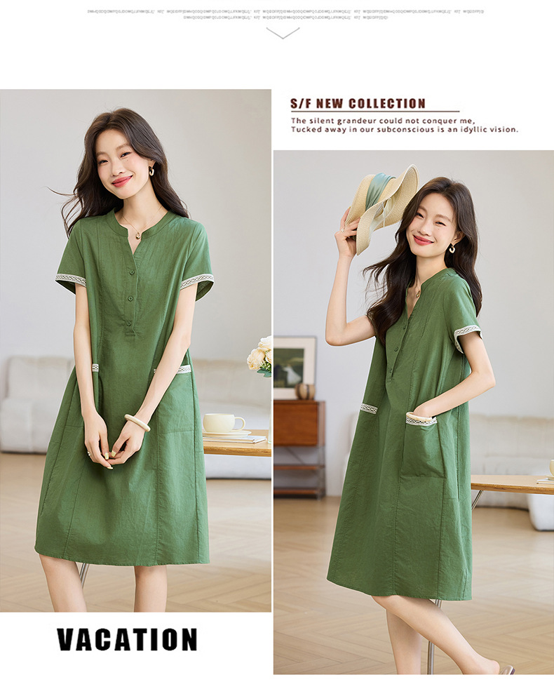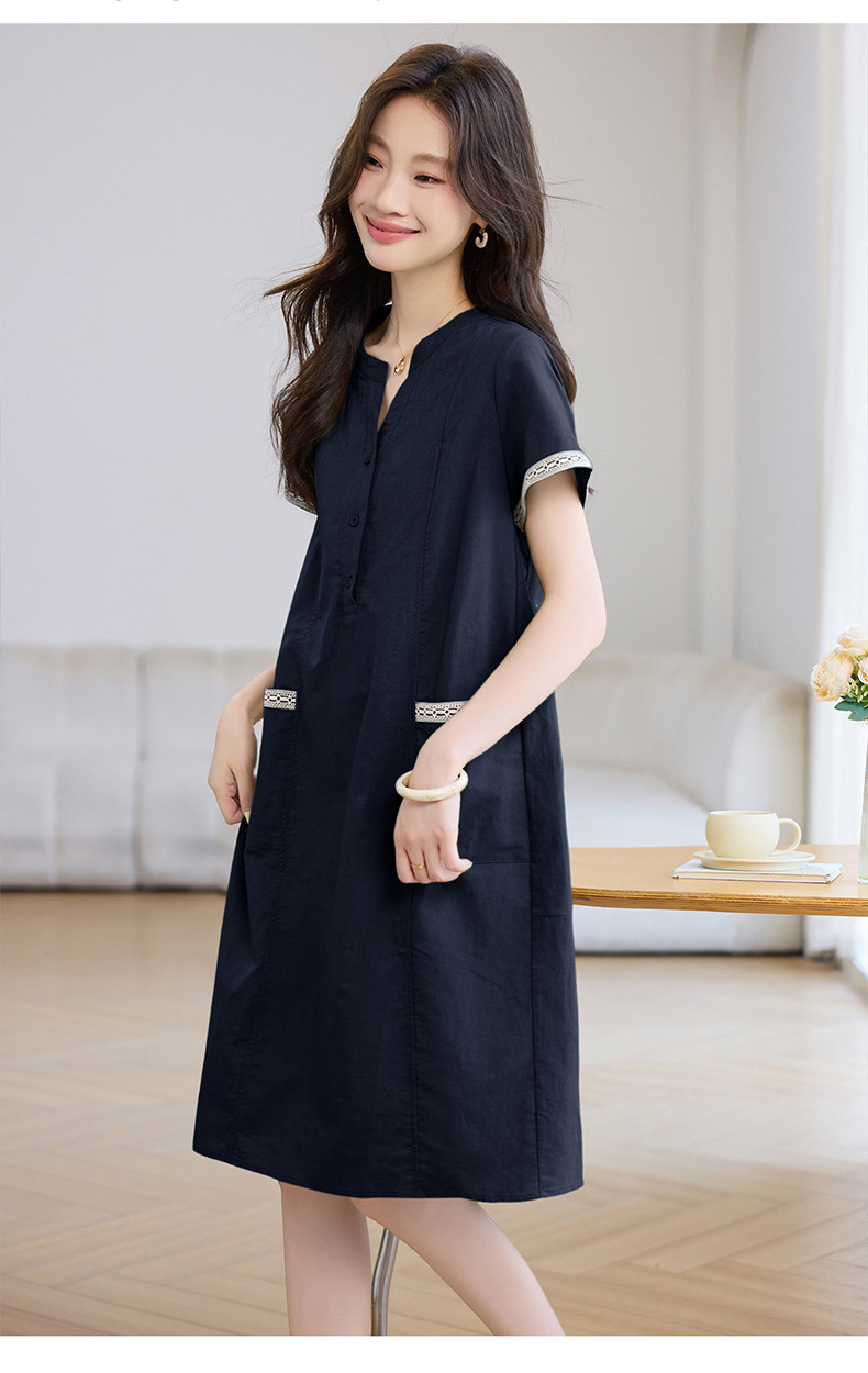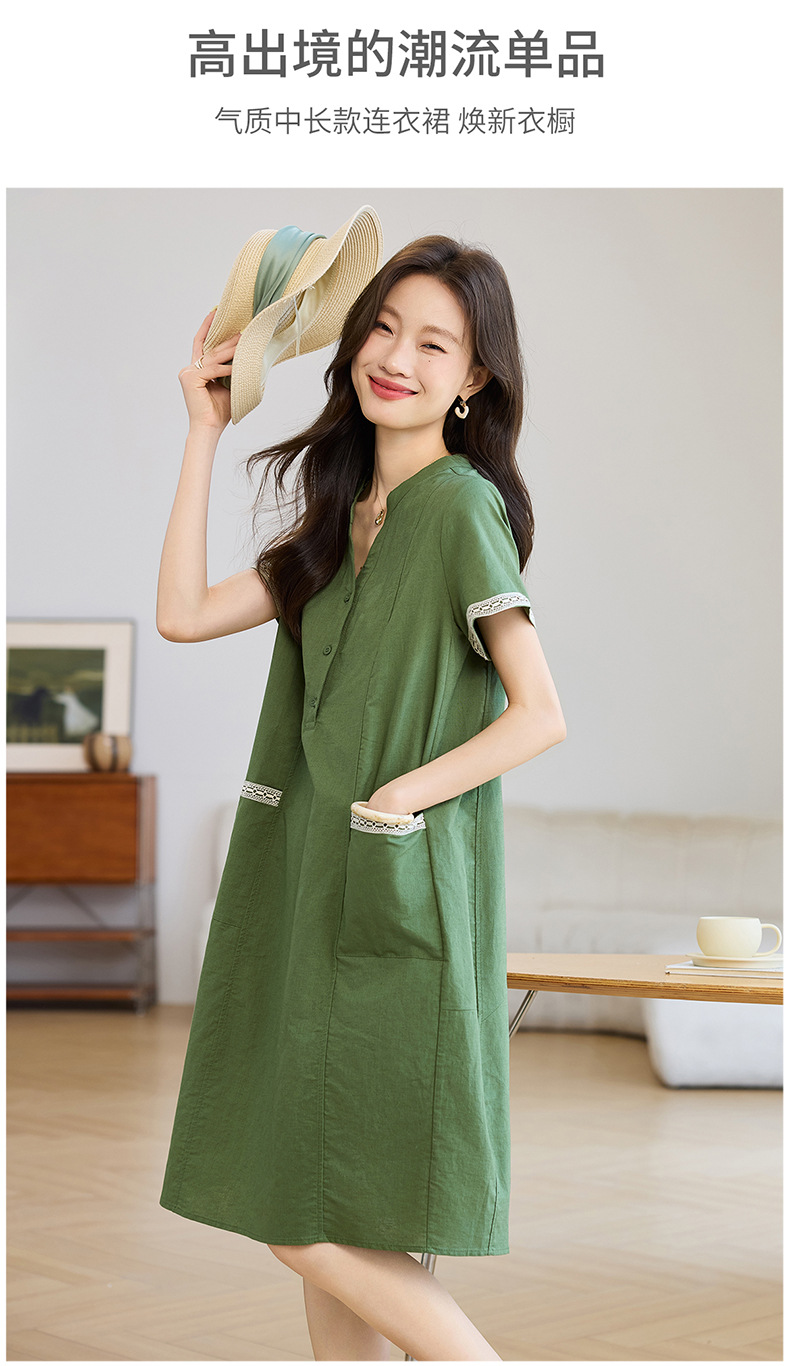 丁摩 棉质拼接花边短袖连衣裙N2577