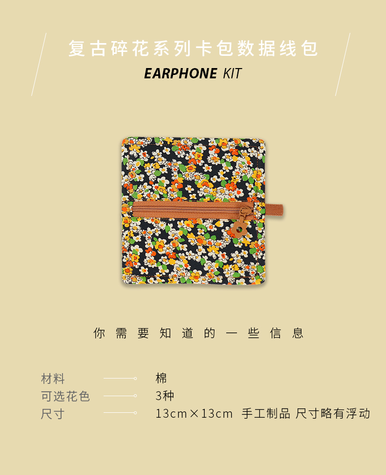 复古碎花系列卡包数据线包蓝牙耳机包小包布艺拉链迷你U盘U盾保护便携