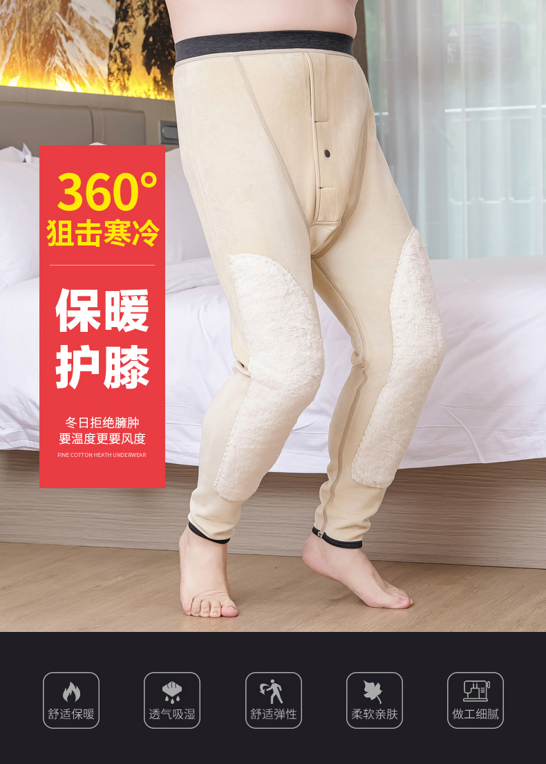 【兔毛绒护膝保暖裤】【新款DPD】大依优型大码男装保暖裤内衣弹力加绒舒适保暖裤秋裤