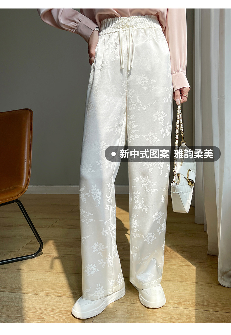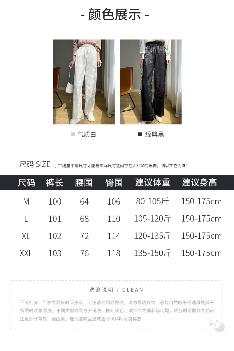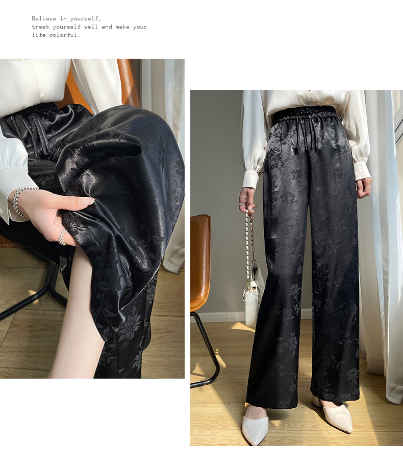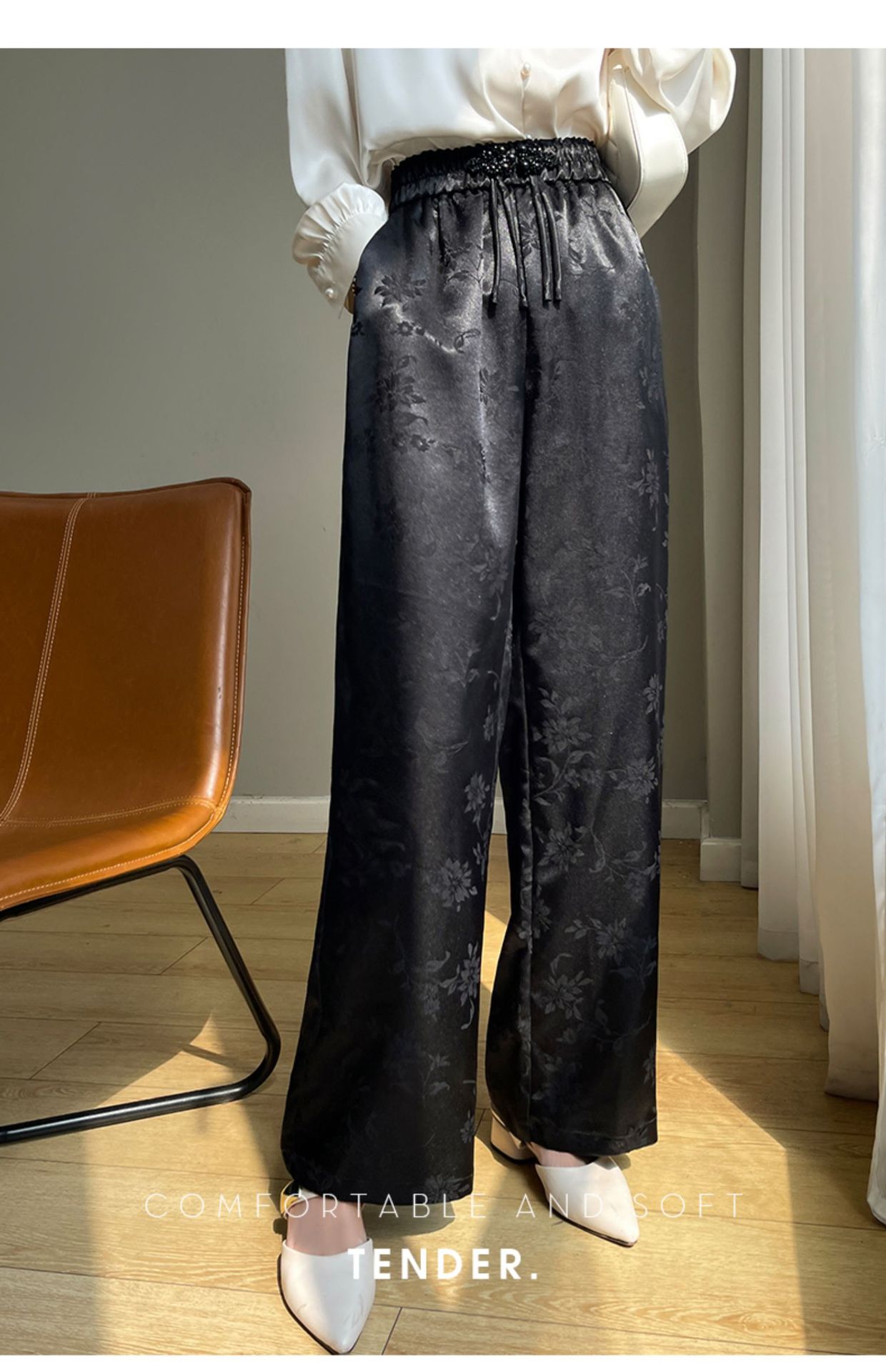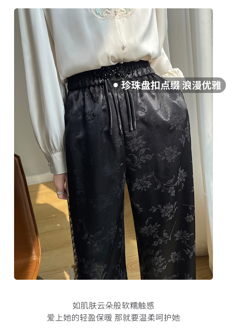 新中式醋酸缎面提花国风阔腿裤,窄版西装裤高级垂感休闲直筒裤子JRGD698