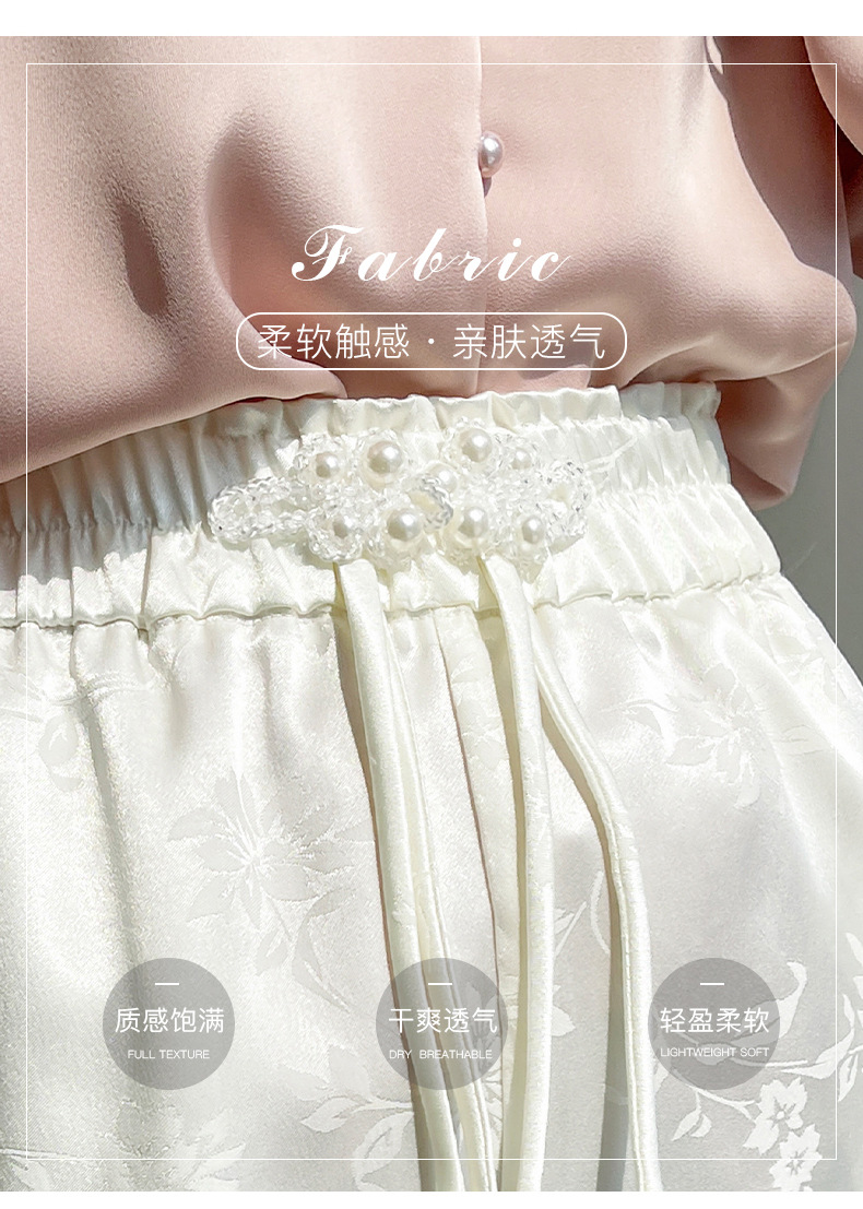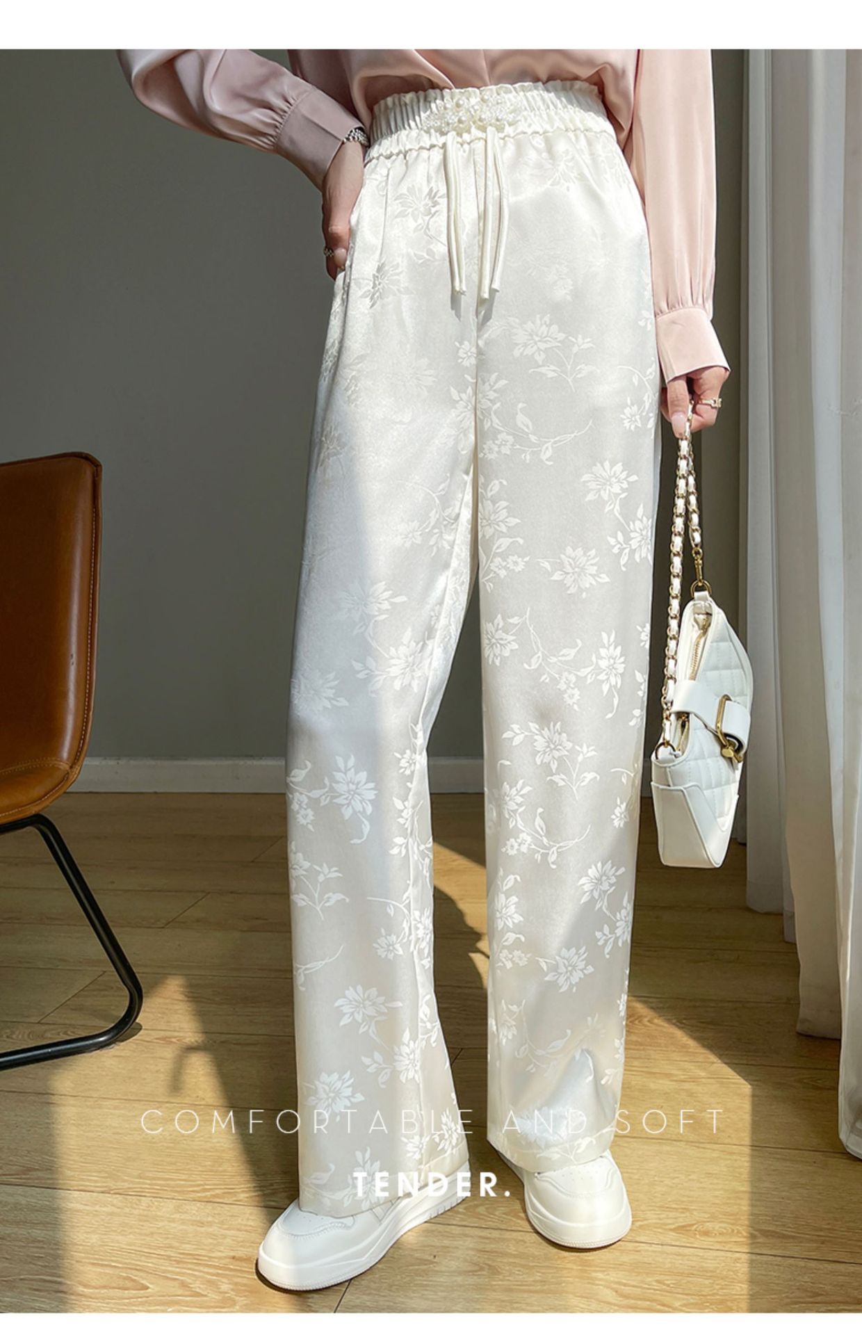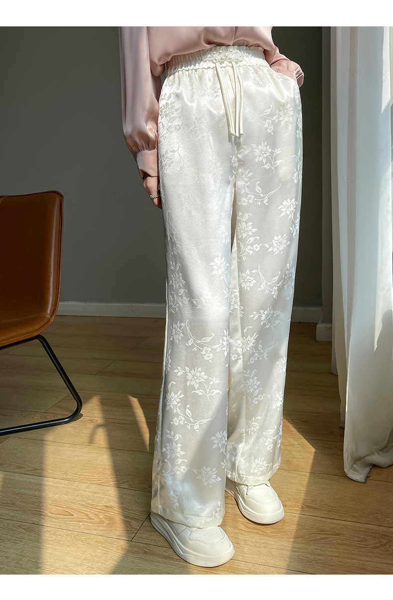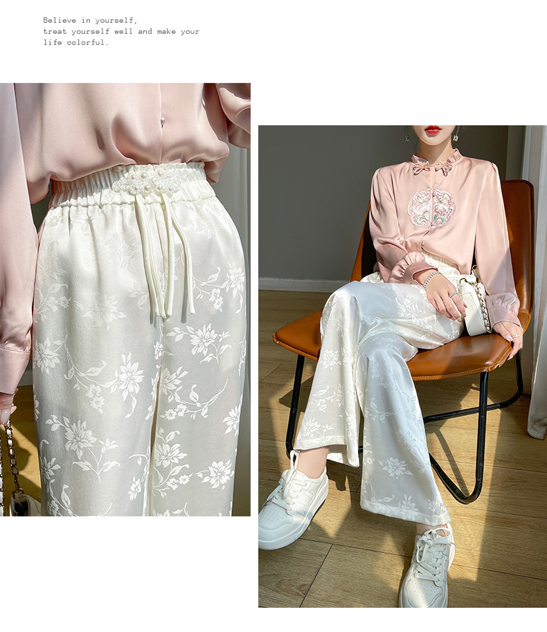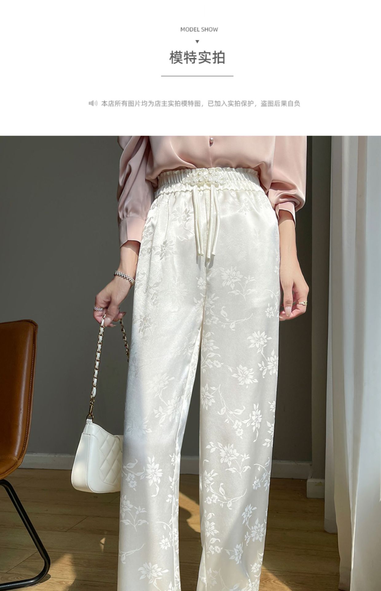 新中式醋酸缎面提花国风阔腿裤,窄版西装裤高级垂感休闲直筒裤子JRGD698
