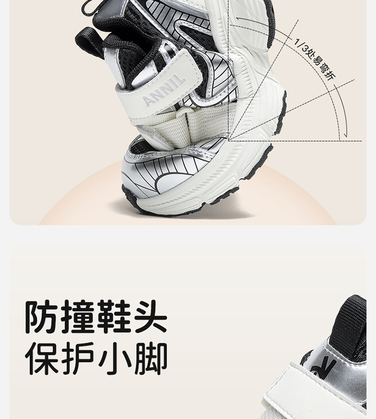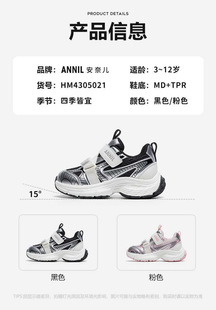 ANNIL/安奈儿运动鞋儿童秋季魔术贴男女同款休闲鞋软底百搭宝宝鞋HM4305021