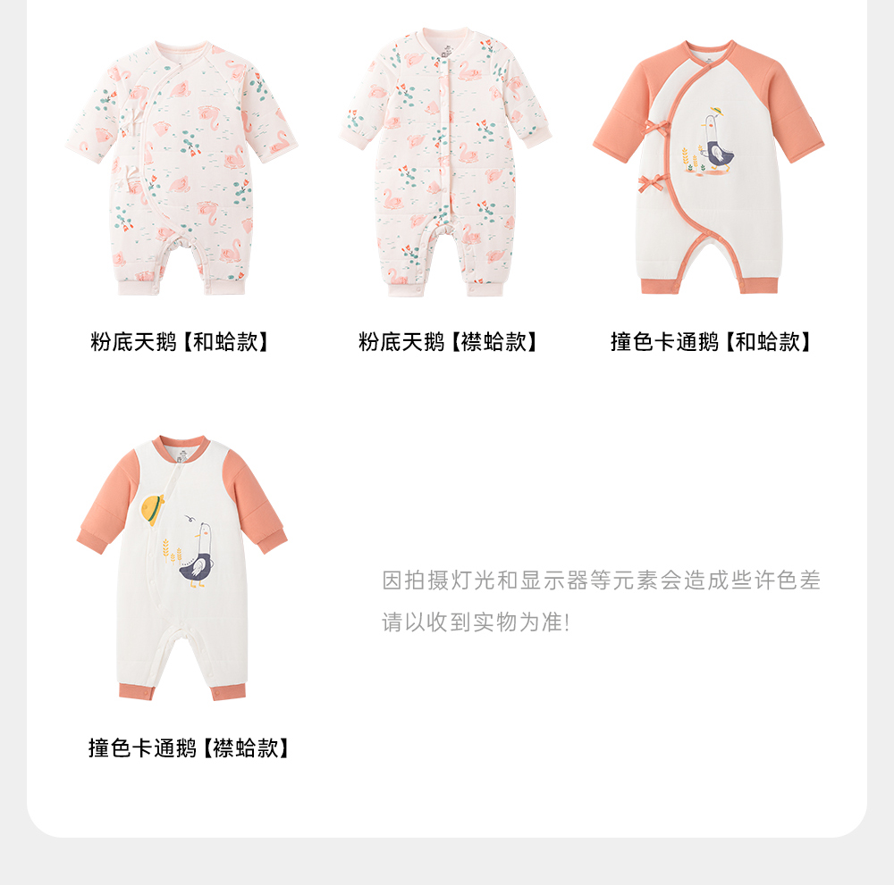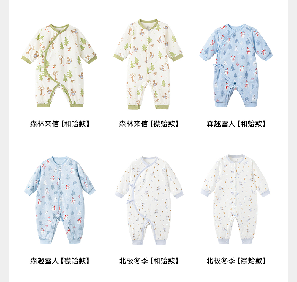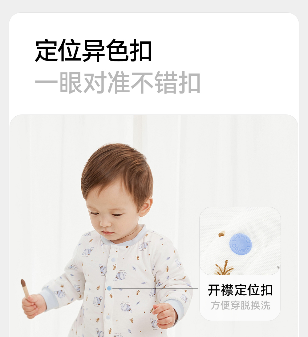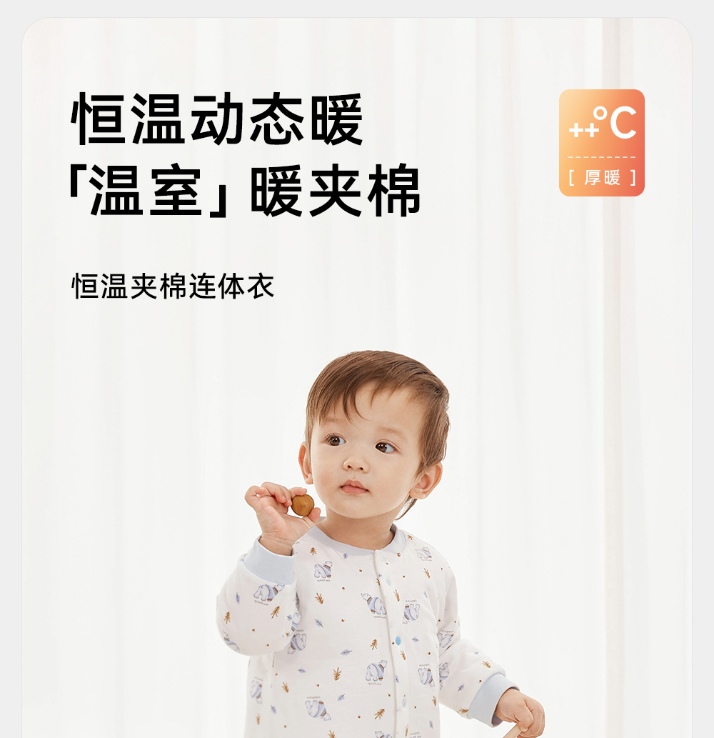 英氏婴儿夹棉连体衣秋冬保暖长袖宝宝内衣男童女童包屁衣新款