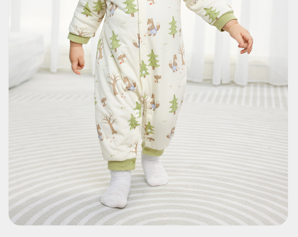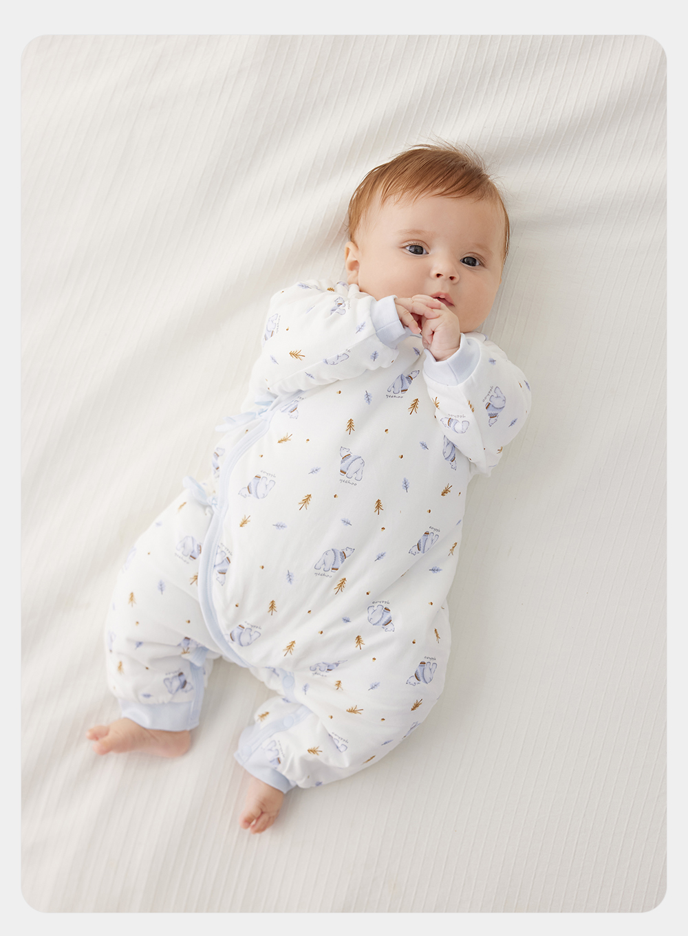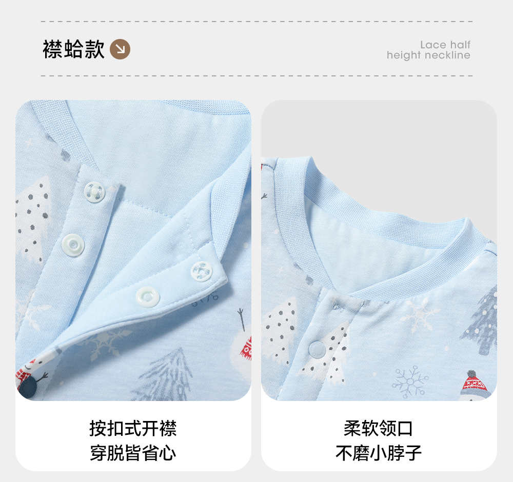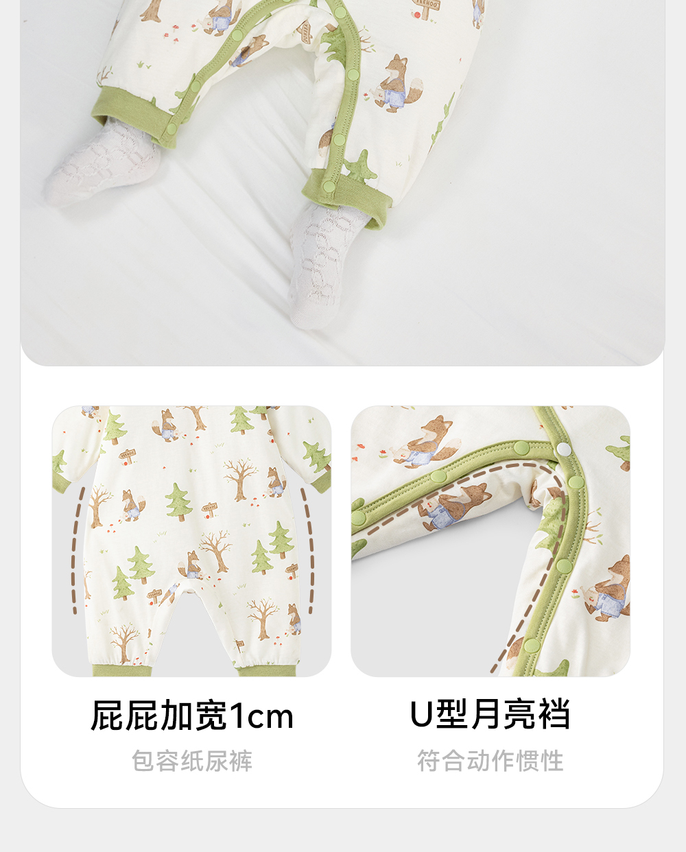 英氏婴儿夹棉连体衣秋冬保暖长袖宝宝内衣男童女童包屁衣新款