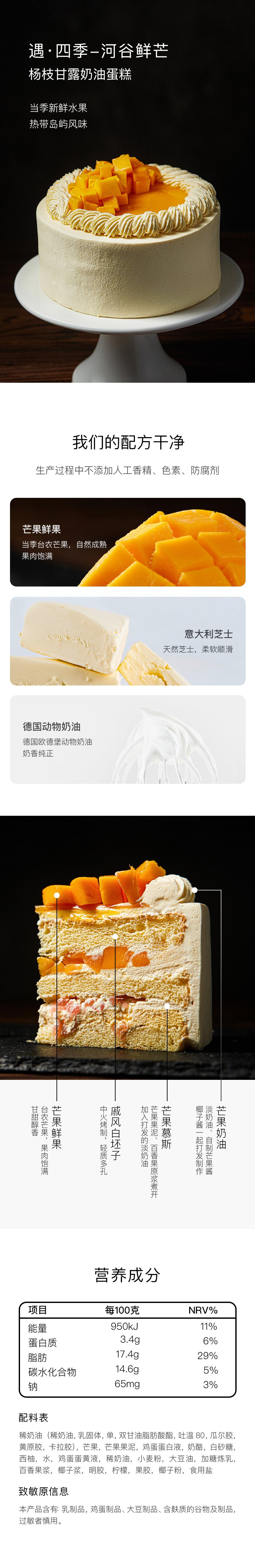 遇四季-河谷鲜芒 杨枝甘露奶油蛋糕(4寸、6寸)