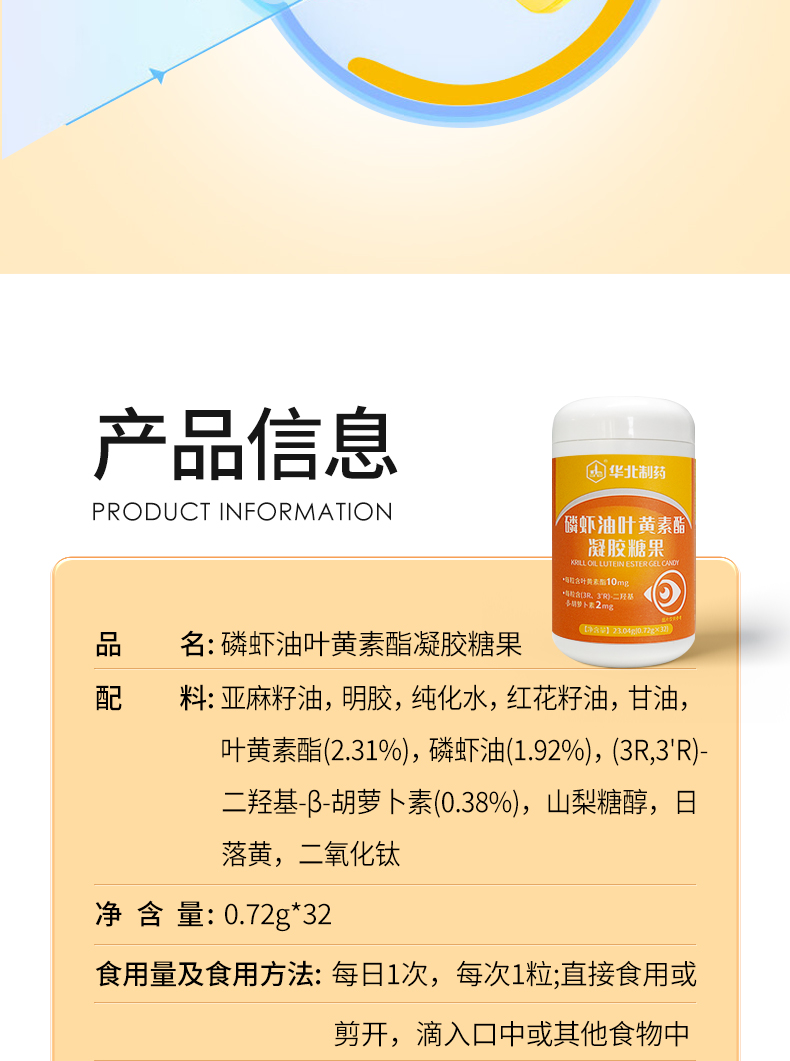 磷虾油叶黄素酯凝胶糖果(无糖)32粒/瓶