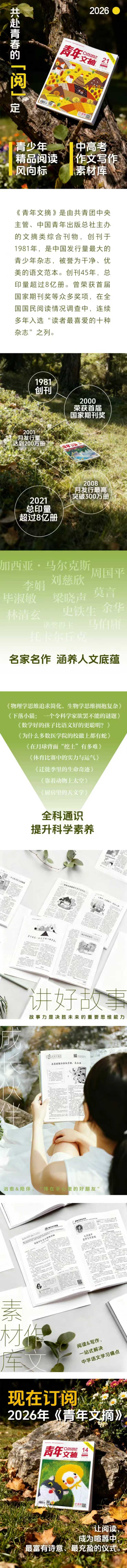 《青年文摘·彩版》2026年4月-2027年3月跨年24期订阅|读者最喜爱十大期刊,8-15岁拓视野、提心智、文理兼修必读