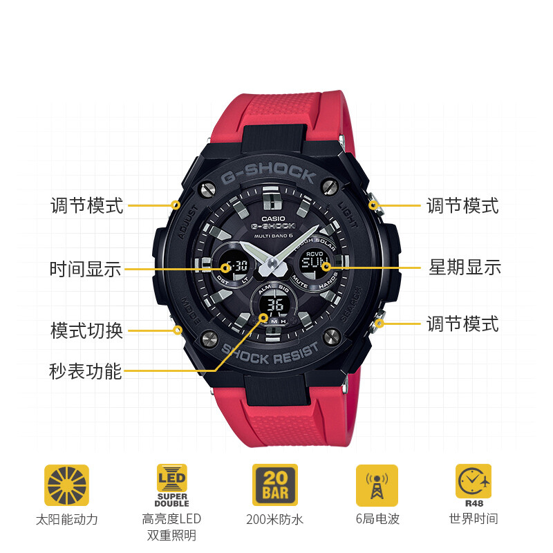 【时计廊】卡西欧手表 G-SHOCK GST-W300太阳能动力男表LED双 GST-W300G-1A4PR