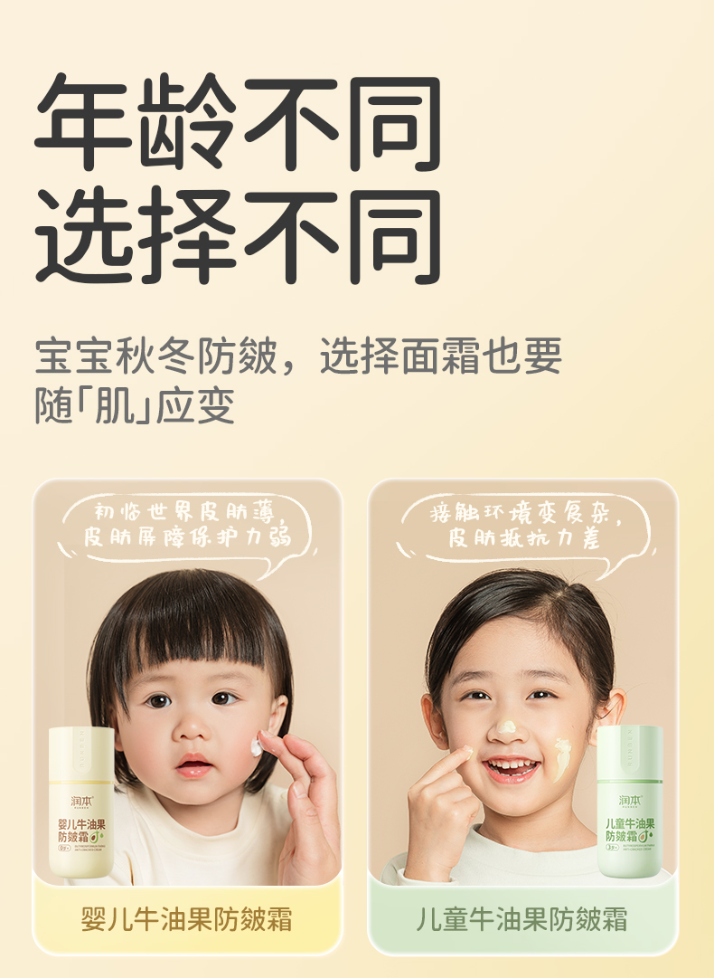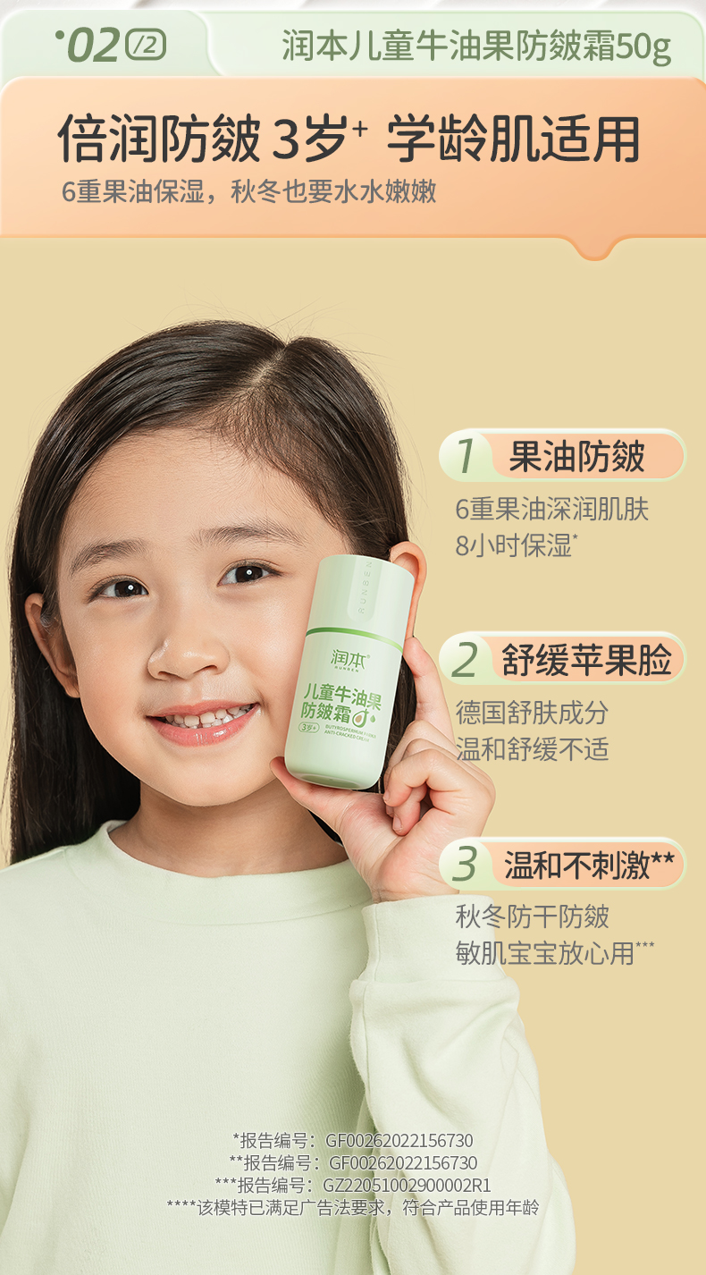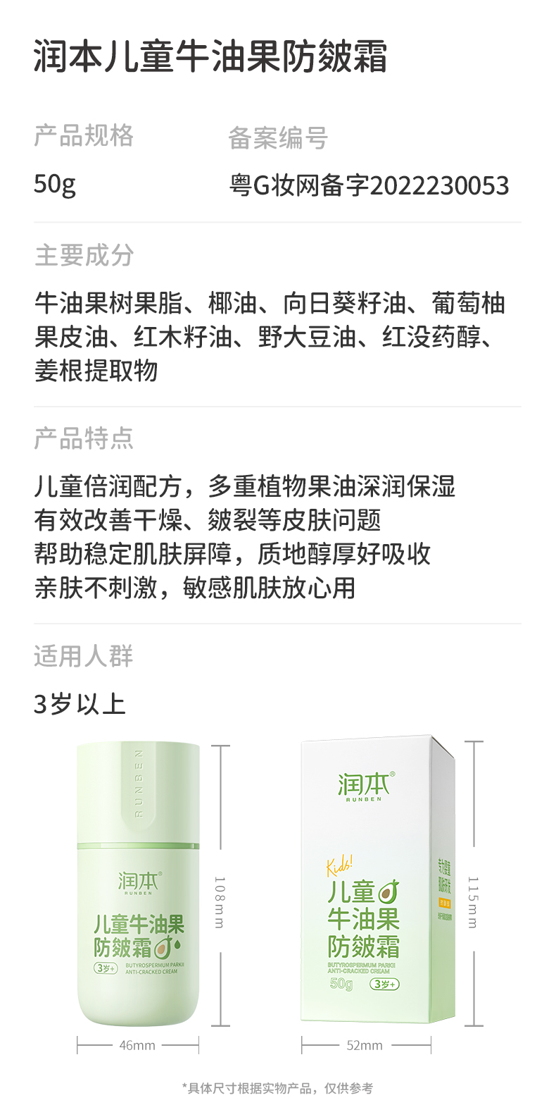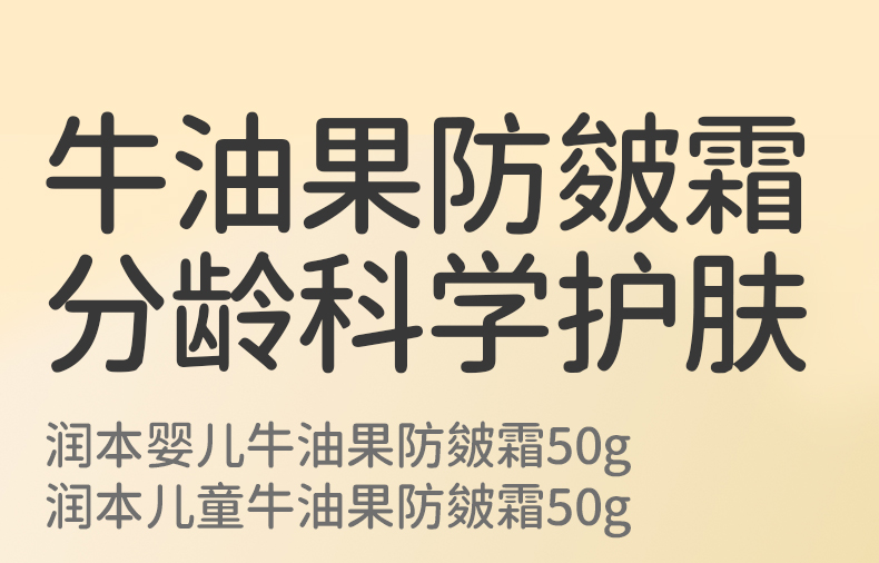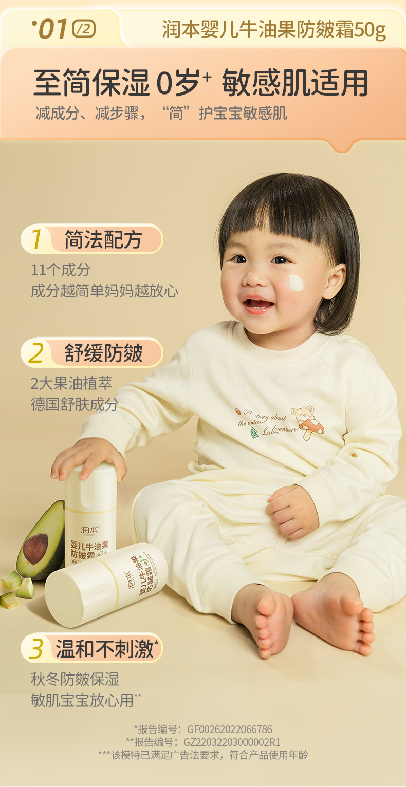 润本婴儿牛油果防皴面霜 滋润补水专用 50g 宝宝分龄面霜 按压泵款
