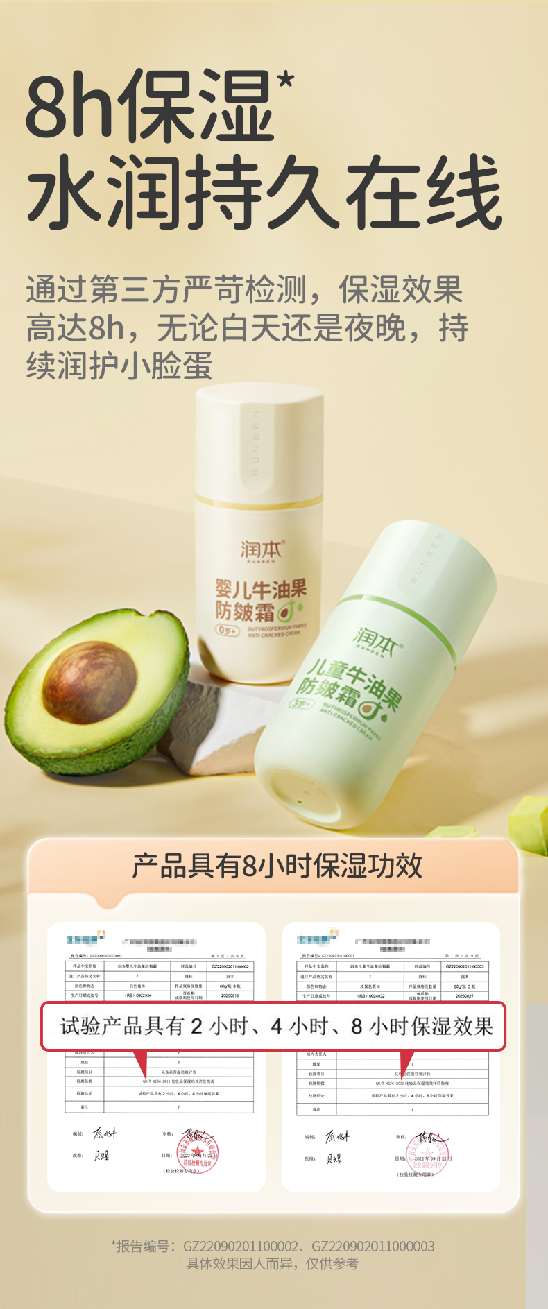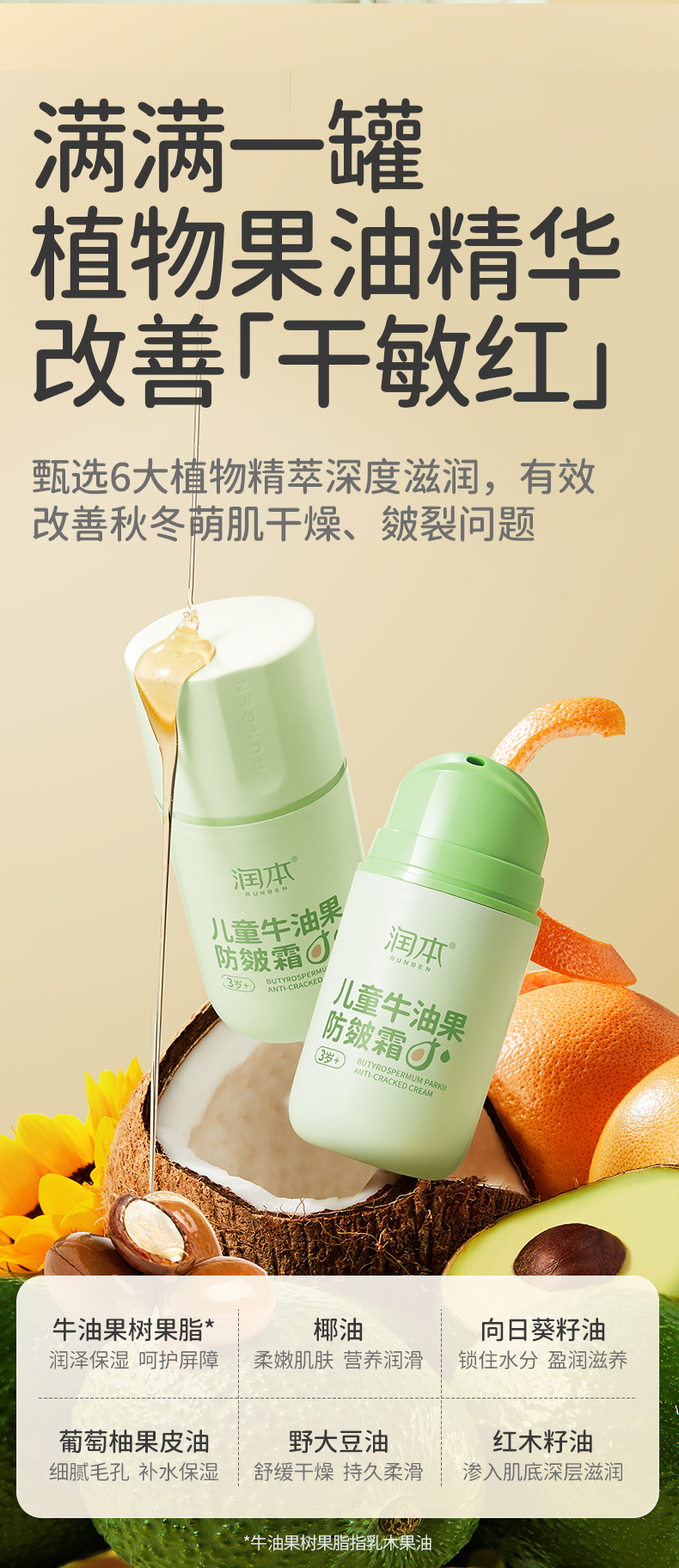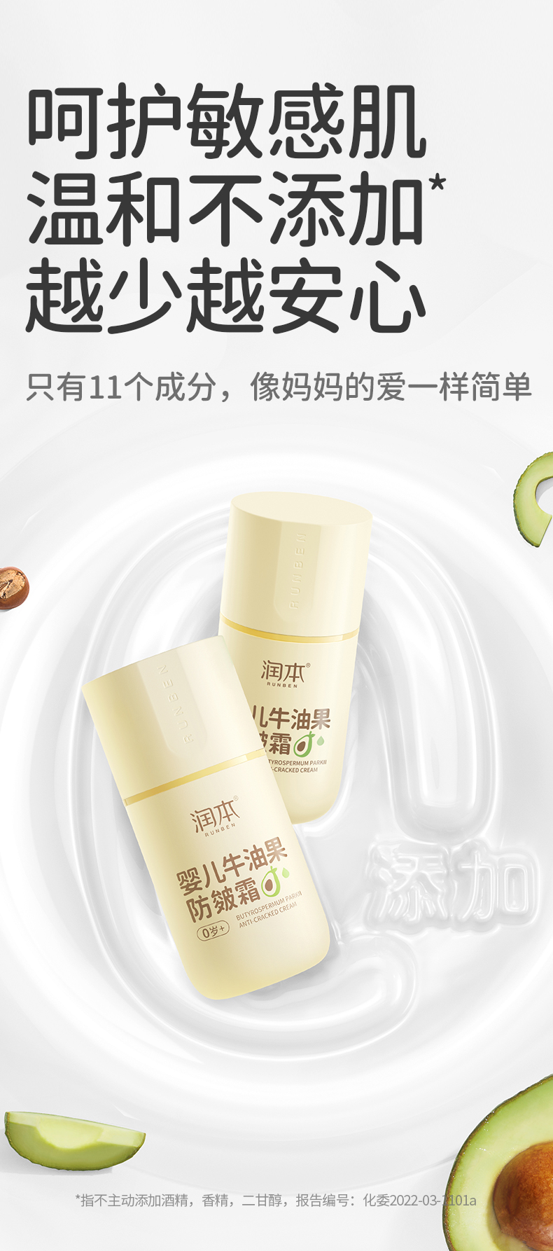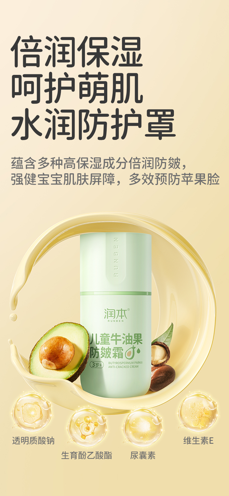 润本婴儿牛油果防皴面霜 滋润补水专用 50g 宝宝分龄面霜 按压泵款