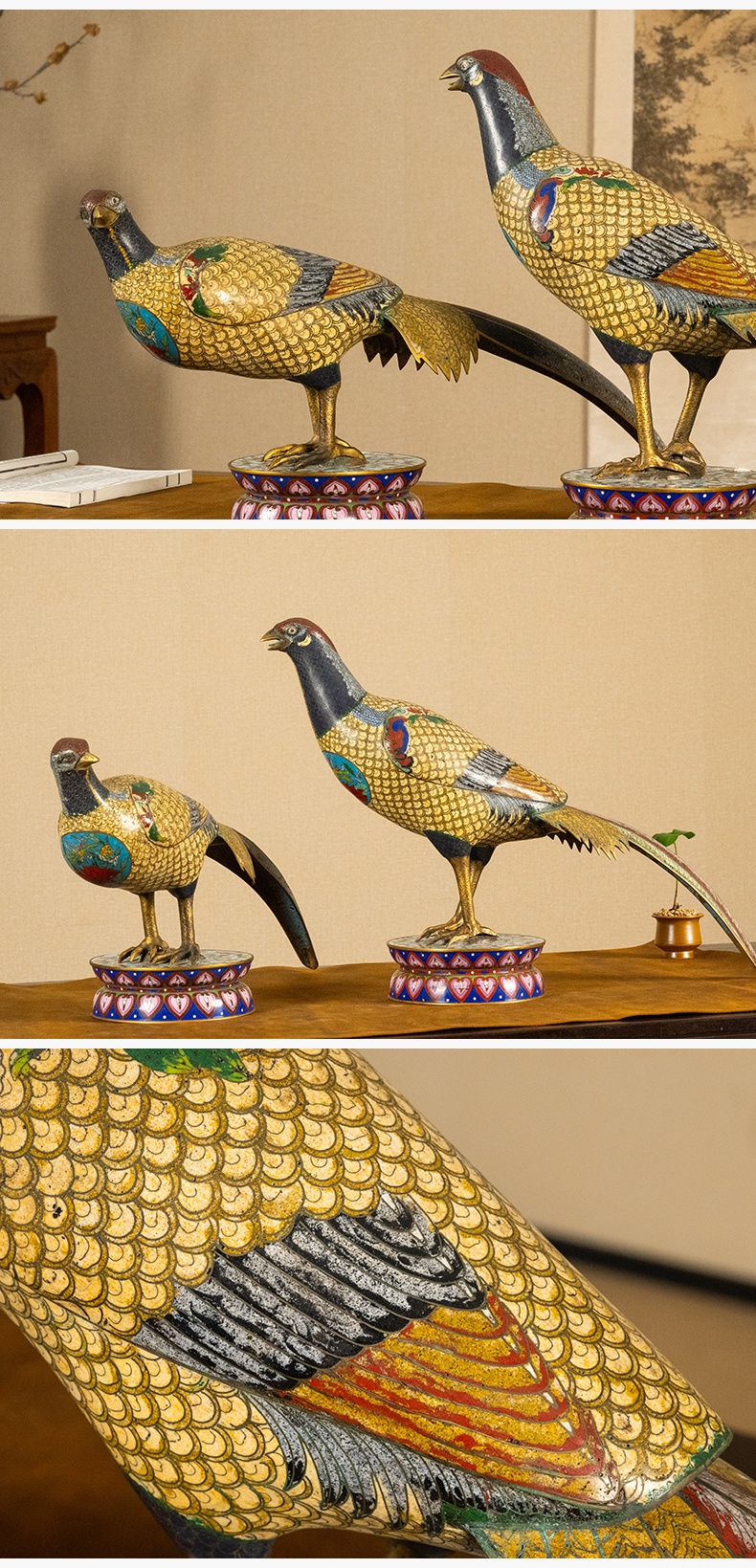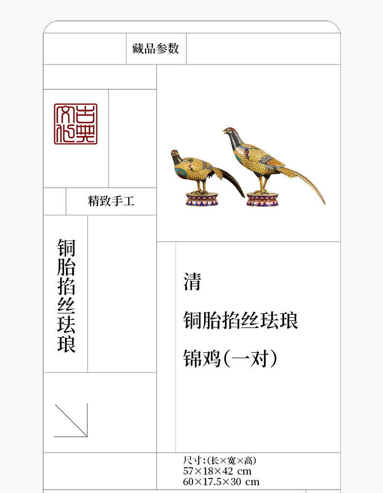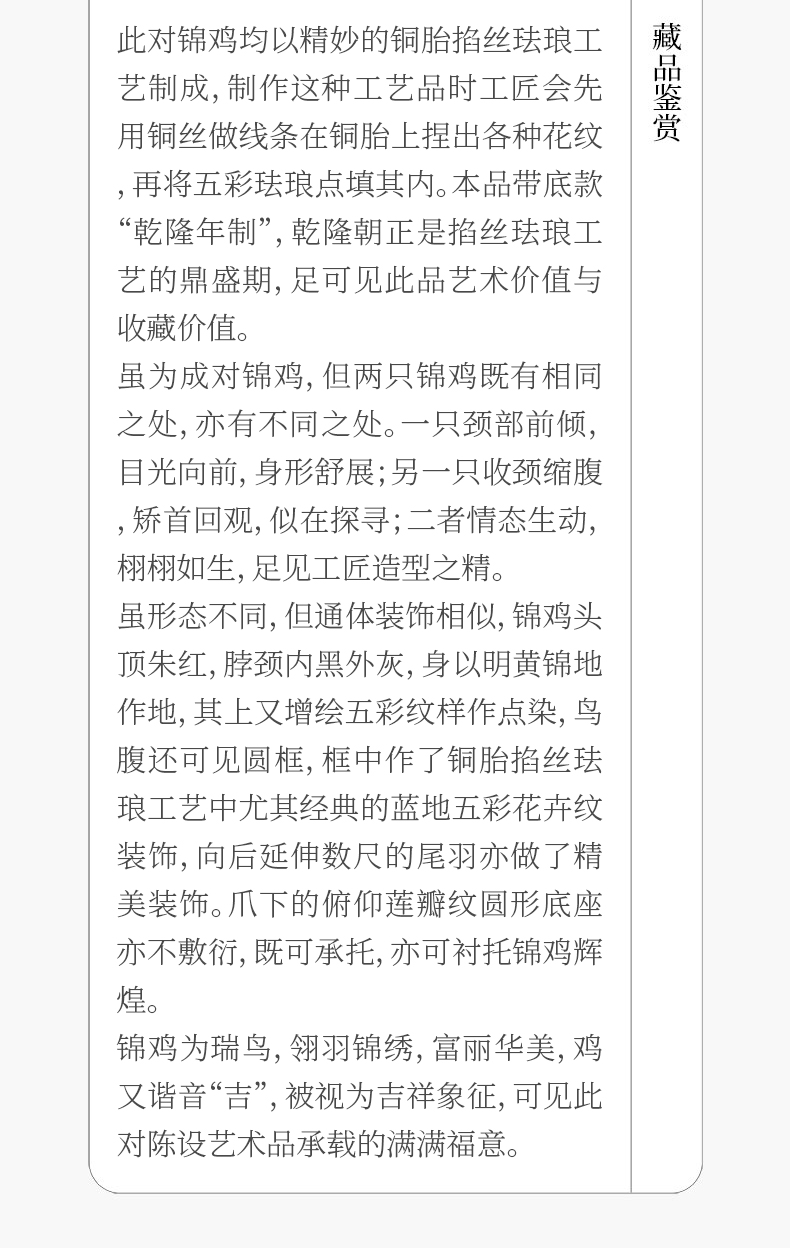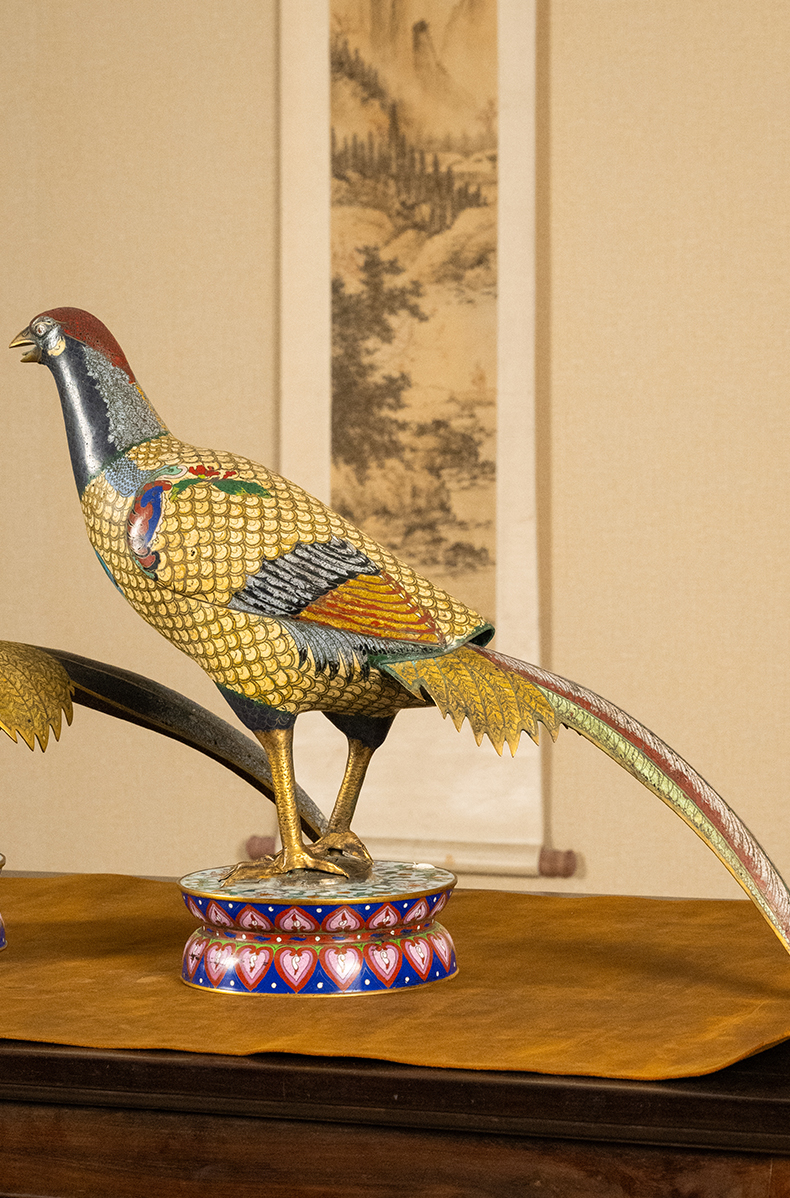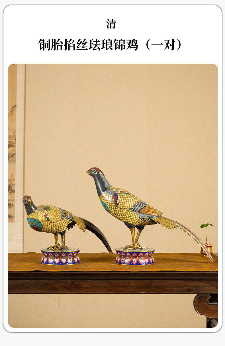 清 铜胎掐丝珐琅锦鸡(一对)