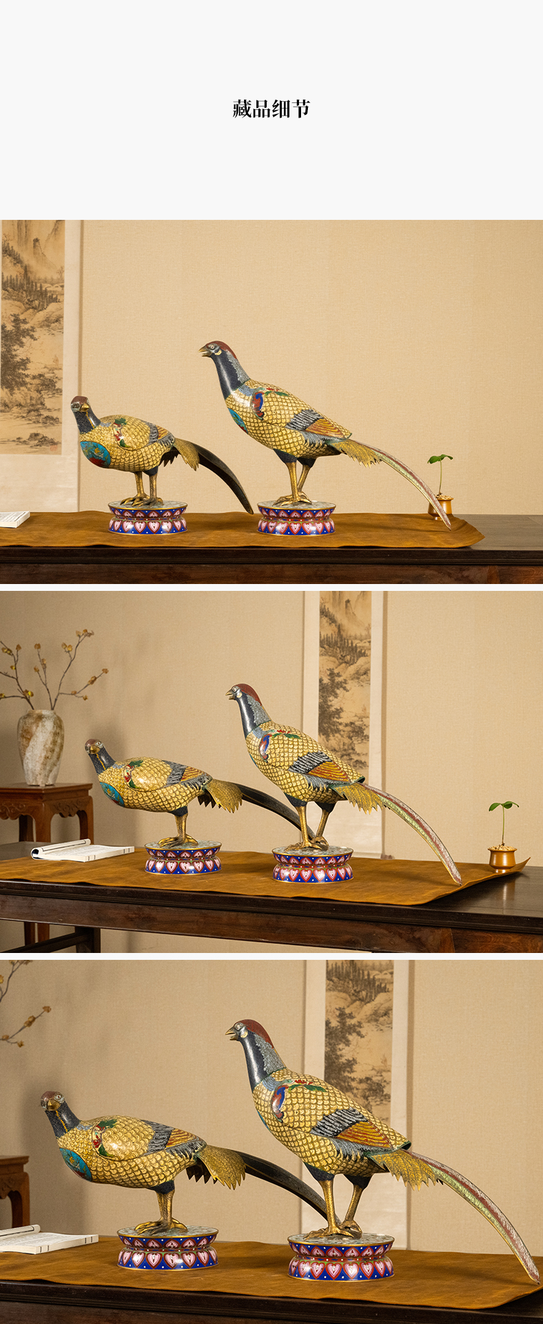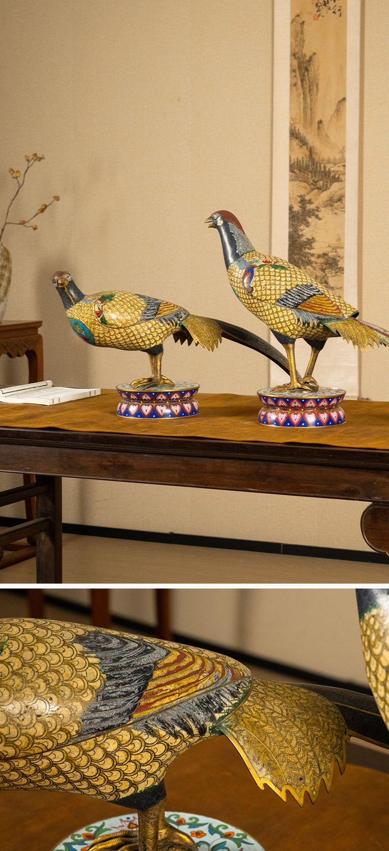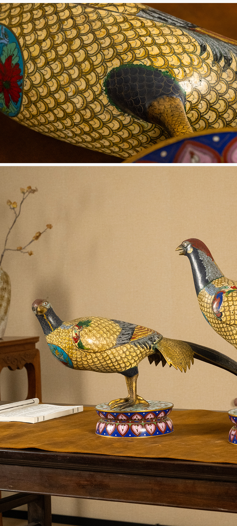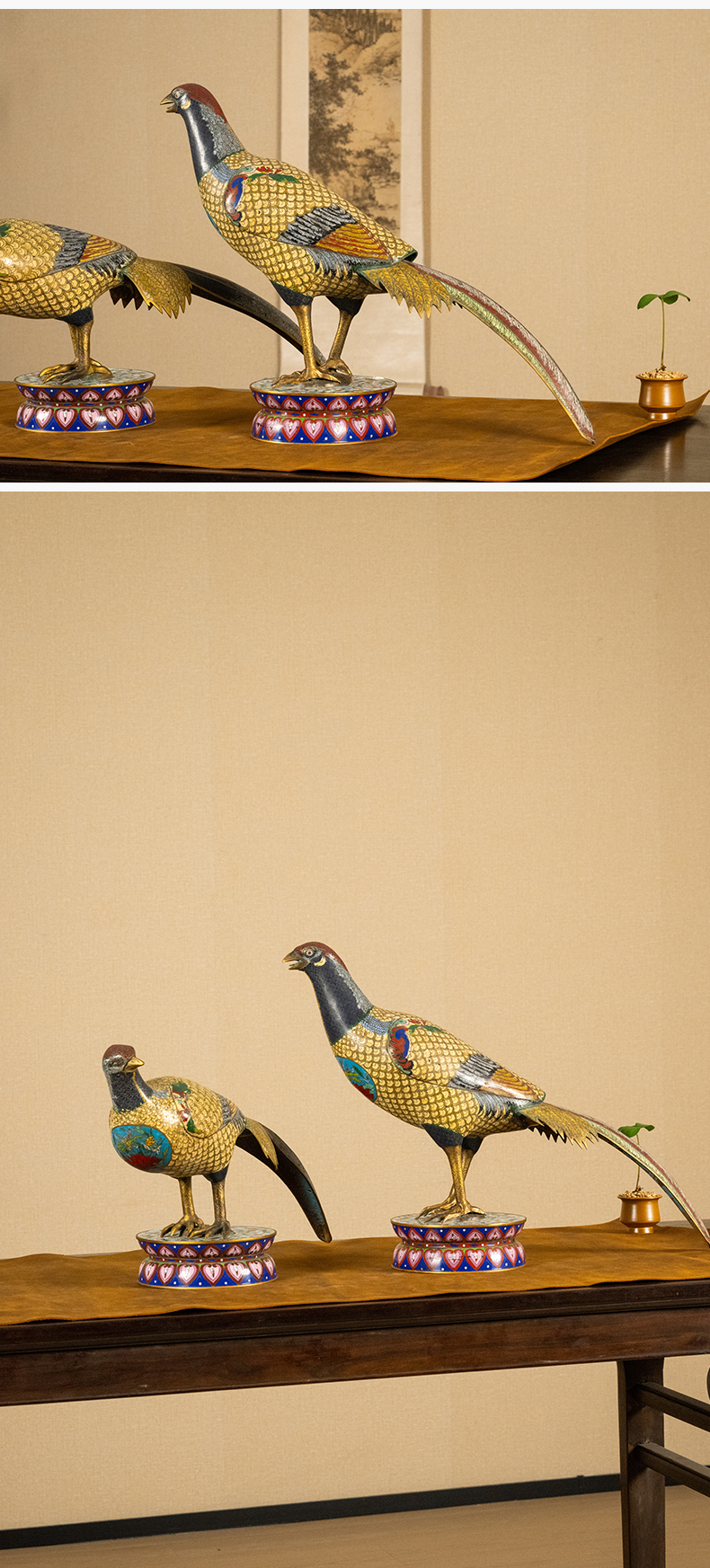 清 铜胎掐丝珐琅锦鸡(一对)
