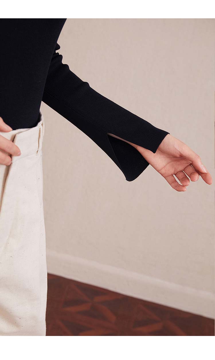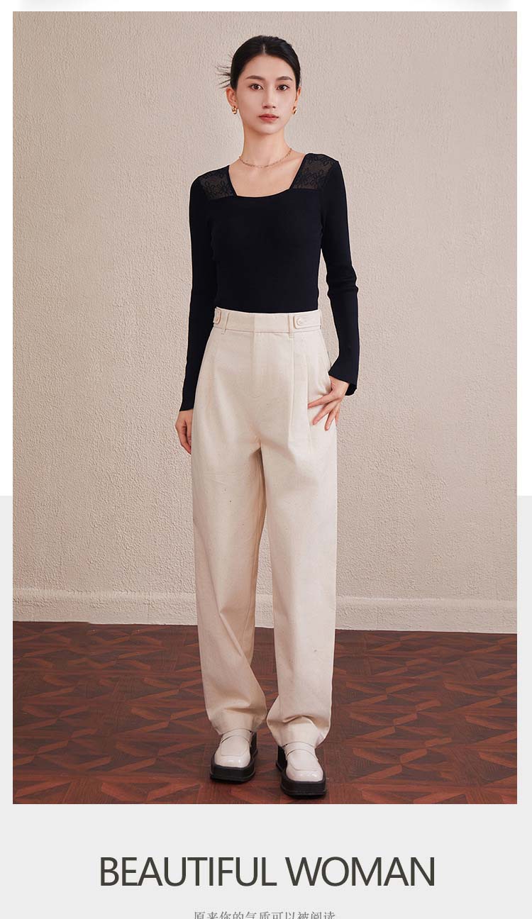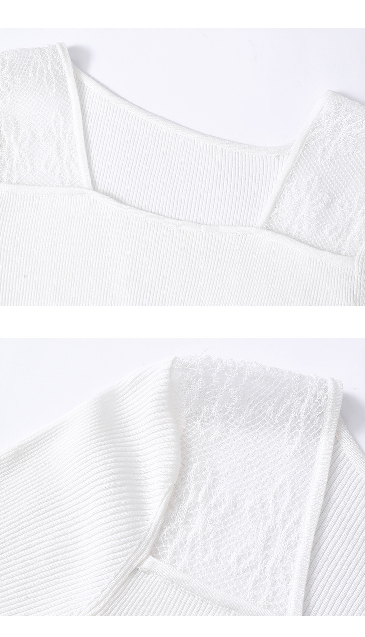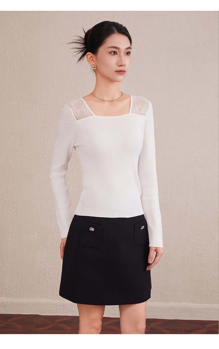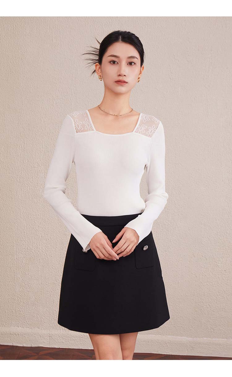 【自】全新升级【铂金会员238/天猫319/差价81】(81911) 洛诗琳25春季新款设计感方领拼接蕾丝长袖薄款纯色针织上衣